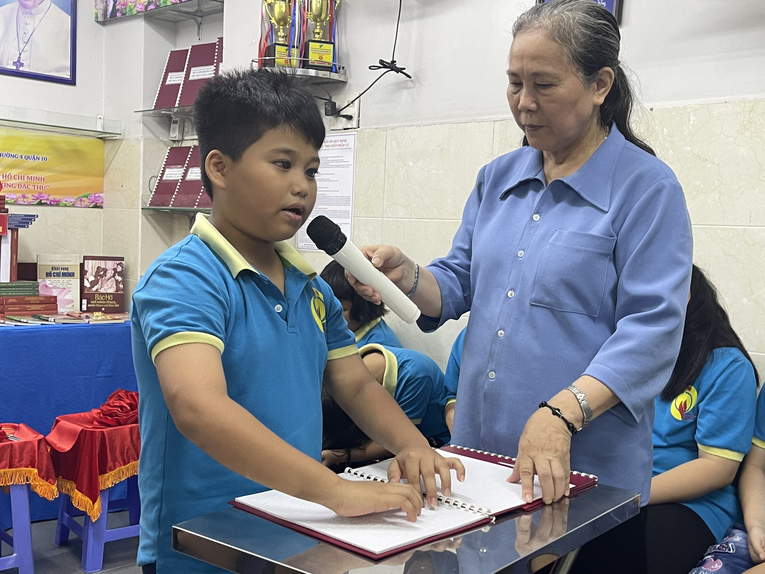 Dịp này, Ủy ban MTTQ Việt Nam Phường 4 cũng đã trao tặng 20 quyển sách chữ “Nổi” và 01 sách “Nói” cho Ban giám hiệu Trường chuyên biệt Nguyễn Đình Chiểu để phục vụ nhu cầu đọc sách và nghe các tác phẩm về Chủ tịch Hồ Chí Minh.
