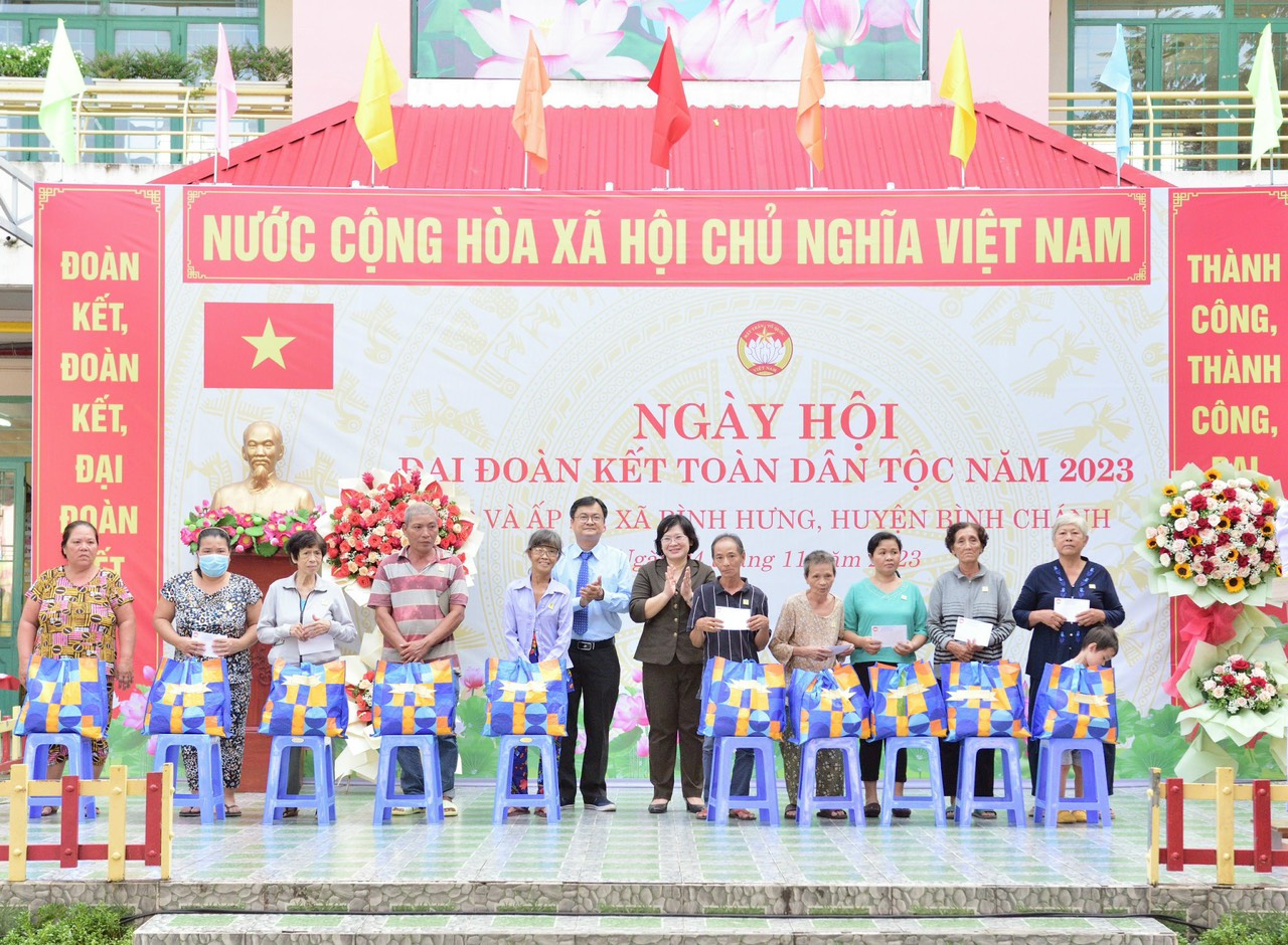 Sáng 4/11, tại Trường Tiểu học Bình Hưng, xã Bình Hưng, huyện Bình Chánh, Ban Công tác Mặt trận ấp 2 và ấp 2A tổ chức Ngày hội “Đại đoàn kết toàn dân tộc” năm 2023. Đến dự có bà Văn Thị Bạch Tuyết - Thành ủy viên, Phó Trưởng đoàn chuyên trách Đoàn Đại biểu Quốc hội TPHCM; ông Lê Nguyễn Hồng Quang - Trưởng Ban Tổ chức Ủy ban MTTQ Việt Nam TPHCM; ông Trương Trần Phương - Phó Chánh Văn phòng Ủy ban MTTQ Việt Nam TPHCM; ông Huỳnh Cao Cường - Ủy viên Ban Thường vụ Huyện ủy, Phó Chủ tịch UBND huyện; bà Trương Thoại Linh - Phó Chủ tịch Ủy ban MTTQ Việt Nam huyện cùng lãnh đạo xã Bình Hưng.