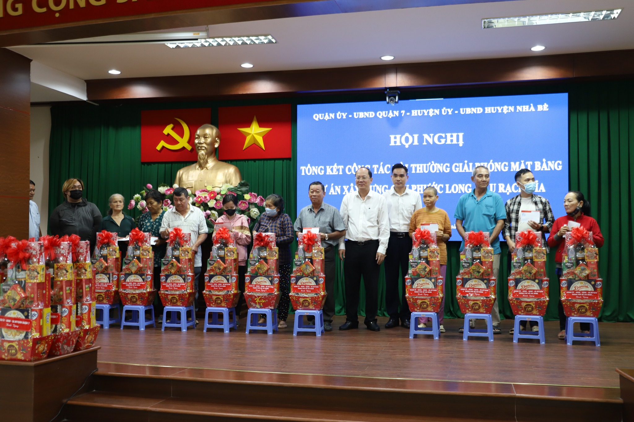 Hội nghị cũng đã tuyên dương, khen thưởng đối với 6 tập thể có thành tích xuất sắc trong công tác bồi thường giải phóng mặt bằng; trao tặng 40 phần quà cho các cá nhân và hộ gia đình thực hiện tốt quy định trong công tác bồi thường giải phóng mặt bằng; tích cực, gương mẫu bàn giao đất cho chủ đầu tư thi công dự án.