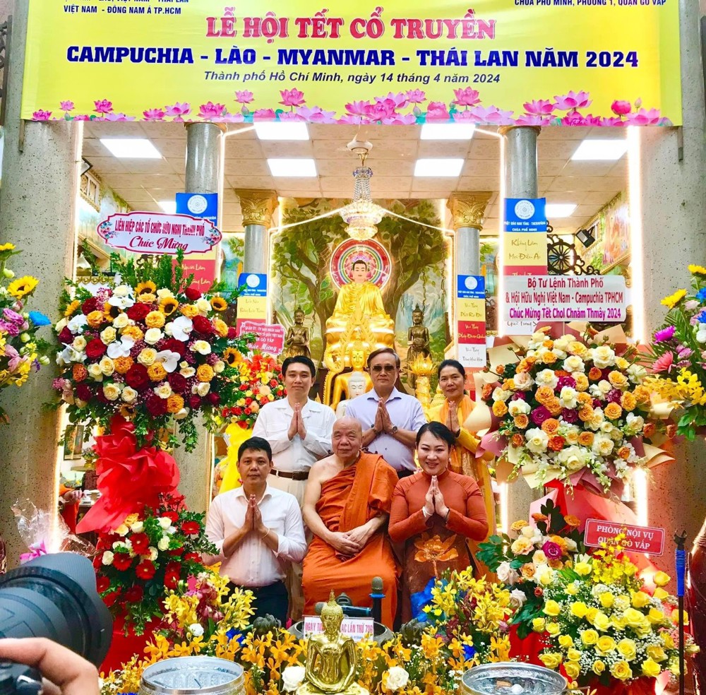 Ngày 14/4. Tại chùa Phổ Minh Phường 1 Gò Vấp trang nghiêm và long trọng tổ chức Lễ hội Tết cổ truyền Campuchia - Lào - Myanmar - Thái Lan năm 2024. Chủ trì Lễ Hội Tết cổ truyền có Hòa thượng Thích Thiện Tâm, Phó Chủ tịch Hội đồng trị sự, Phó Trưởng ban Thường trực Ban Phật giáo Quốc tế Trung Ương, Phó Chủ tịch Trung Ương Hội Hữu nghị Việt Nam - Campuchia, trụ trì chùa Phổ Minh và Chư Tăng, Phật Tử các nước Phật Giáo Asian; Trung tướng Nguyễn Văn Nam, Ủy viên Ban Thường vụ Thành ủy, Tư lệnh Bộ Tư lệnh TP.HCM, bà Trần Thị Thanh Nhàn Ủy viên Ban Thường vụ Quận ủy/Trưởng Ban Dân Vận Quân ủy; Ông Võ Tấn Tài, Ủy viên Thường trực Ủy ban Mặt trận Tổ quốc Việt Nam quận Gò Vấp; Đại diện lãnh đạo Đảng ủy - UBND - Ủy ban Mặt trận Tổ quốc Việt Nam phường 1 Gò Vấp; Chủ tịch Hội Hữu nghị Việt Nam - Campuchia TP.HCM; Ông Chan Sorykan Tổng Lãnh sự Campuchia tại TP.HCM; Ông Vanxay Keovilay Lãnh sự Lào tại TP.HCM; đại diện Tổng Lãnh sự quán Thái Lan tại TP.HCM,... và đông đảo lưu học sinh Campuchia, Lào, Thái Lan đang theo học tại các trường đại học trên địa bàn Thành phố..