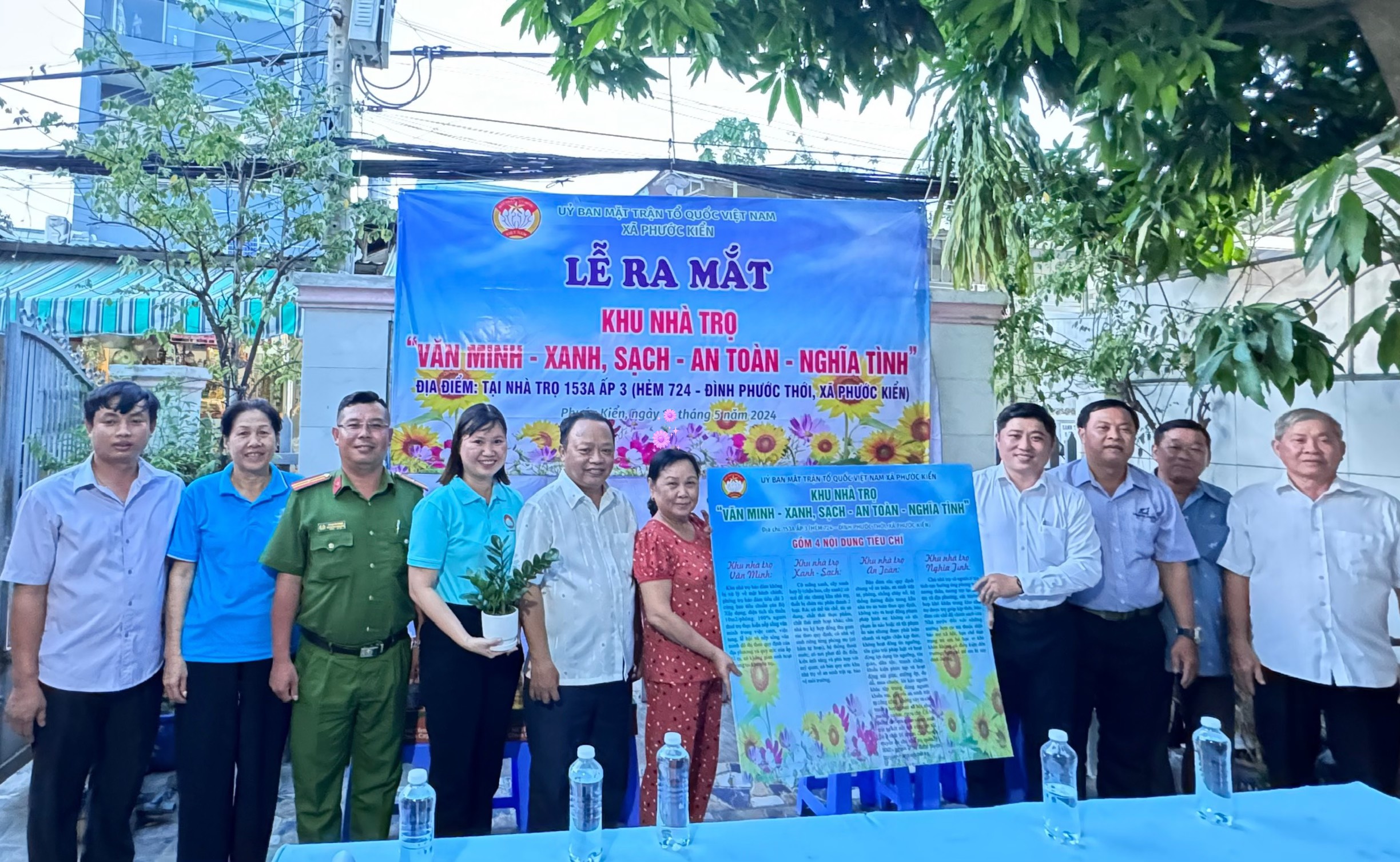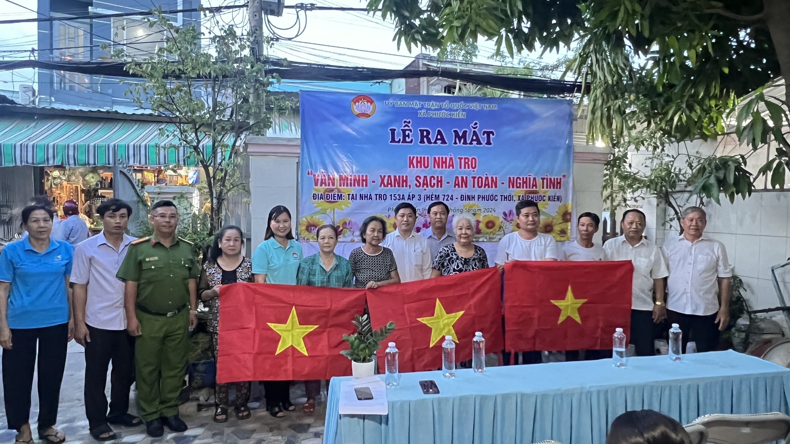 Thiết thực chào mừng Đại hội đại biểu Mặt trận Tổ quốc Việt Nam huyện Nhà Bè lần thứ XII, nhiệm kỳ 2024-2029 và kỷ niệm 134 năm ngày sinh Chủ tịch Hồ Chí Minh (19/5/1890 – 19/5/2024). Chiều ngày 11/5, Ủy ban Mặt trận Tổ quốc xã Phước Kiển, huyện Nhà Bè tổ chức lễ ra mắt mô hình khu nhà trọ “Văn minh - xanh, sạch - an toàn - nghĩa tình” tại số 153A, ấp 3, xã Phước Kiển. Đến dự có Ông Lê Văn Hoa - Phó Trưởng Ban Dân vận Huyện ủy; Ông Lâm Tấn Đạt – Phó Bí thư Thường trực Đảng ủy xã Phước Kiển.