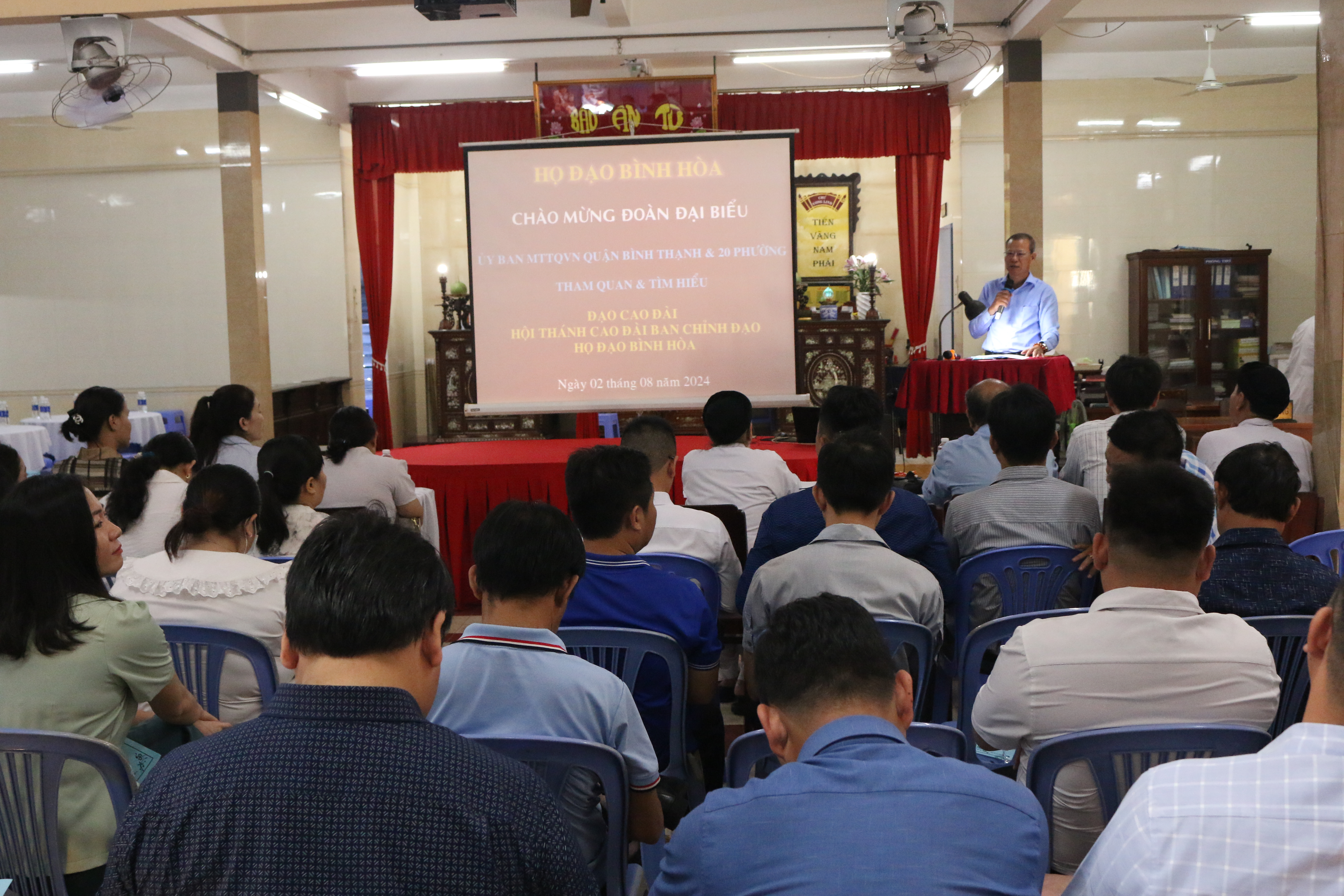 Sáng ngày 2/8/2024, Đoàn đại biểu cán bộ Mặt trận tổ quốc Việt Nam quận do ông Nguyễn Đức Tiến - Phó Chủ tịch Ủy ban MTTQ Việt Nam quận làm Trưởng đoàn đến tham quan và tìm hiểu Thánh thất Bình Hòa - Hội thánh Cao đài Ban Chỉnh đạo tọa lạc tại số 174/30A Chu Văn An, Phường 12.