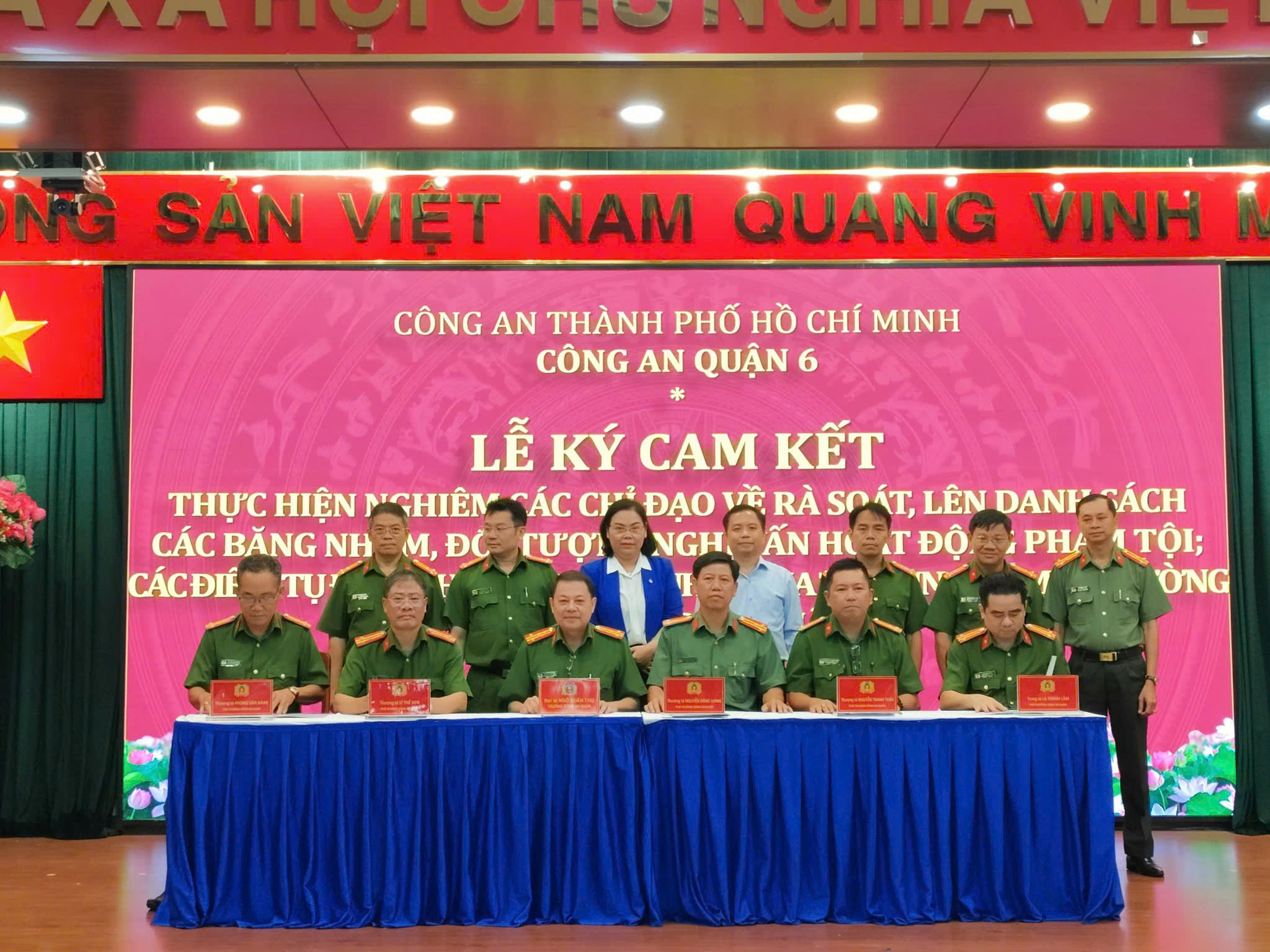 Cũng tại Hội nghị, Công an quận 6 đã thực hiện Lễ ký cam kết với Công an 14 phường về việc thực hiện nghiêm các chỉ đạo về rà soát, lên danh sách các băng nhóm, đối tượng nghi vấn hoạt động phạm tội; các điểm, tụ điểm phức tạp về hình sự, ma túy, kinh tế, môi trường trên địa bàn.