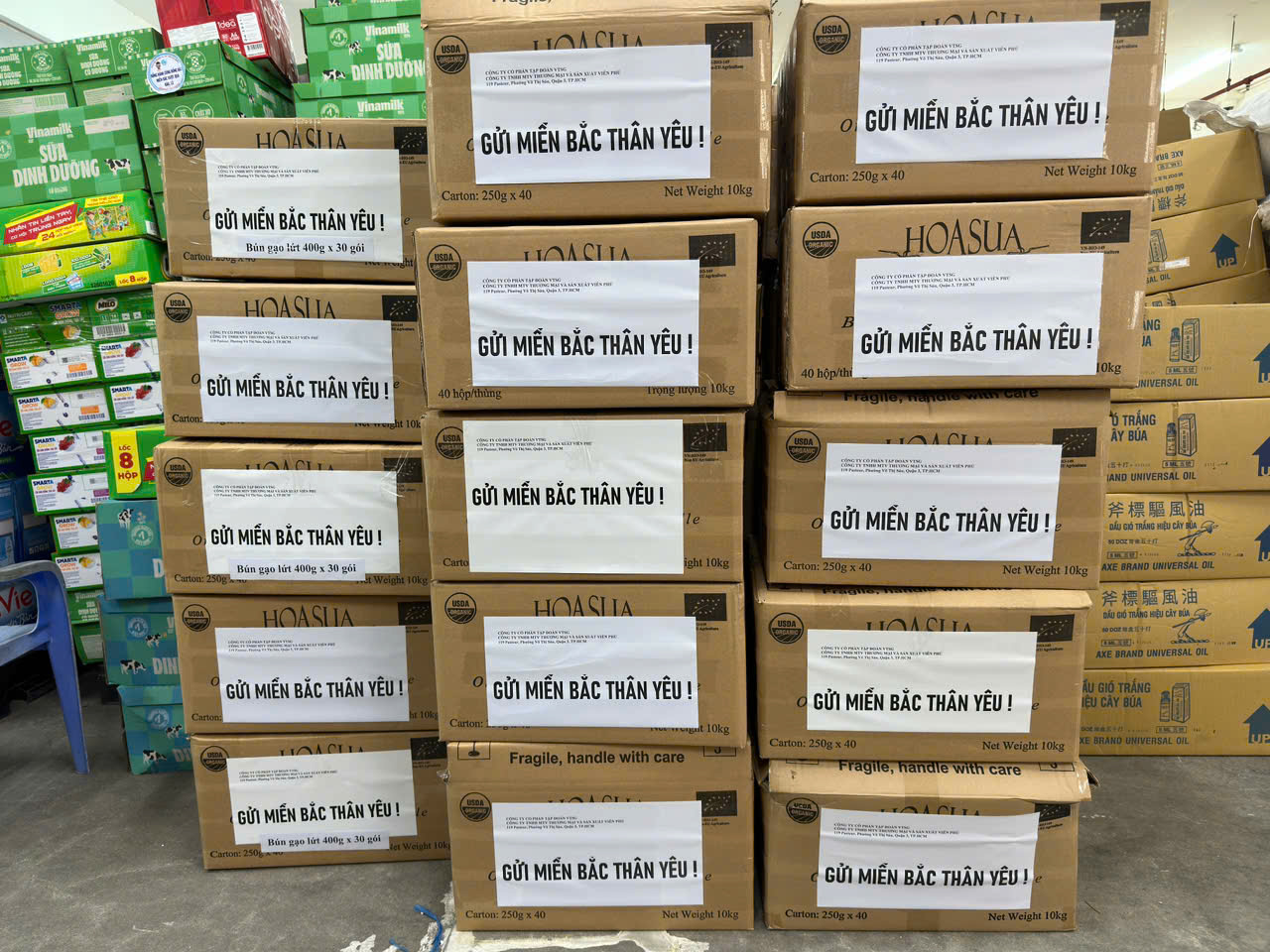 Trên những thùng hàng từ khắp nơi trên Thành phố tập kết về kho Mặt trận TP.HCM không khó để nhìn thấy những dòng chữ đơn giản mà chân thành “Cố lên miền Bắc, chúng tôi luôn bên các bạn”, "Đồng hành cùng đồng bào miền Bắc vượt qua Bão, lũ", "Gửi miền Bắc thân yêu", khiến lòng tôi vô cùng xúc động. Đó không chỉ là lời động viên dành cho đồng bào miền Bắc đang chịu thiệt hại nặng nề từ bão số 3, mà còn là biểu tượng của sự sẻ chia, tình cảm đồng bào gắn bó keo sơn của người dân Việt Nam.