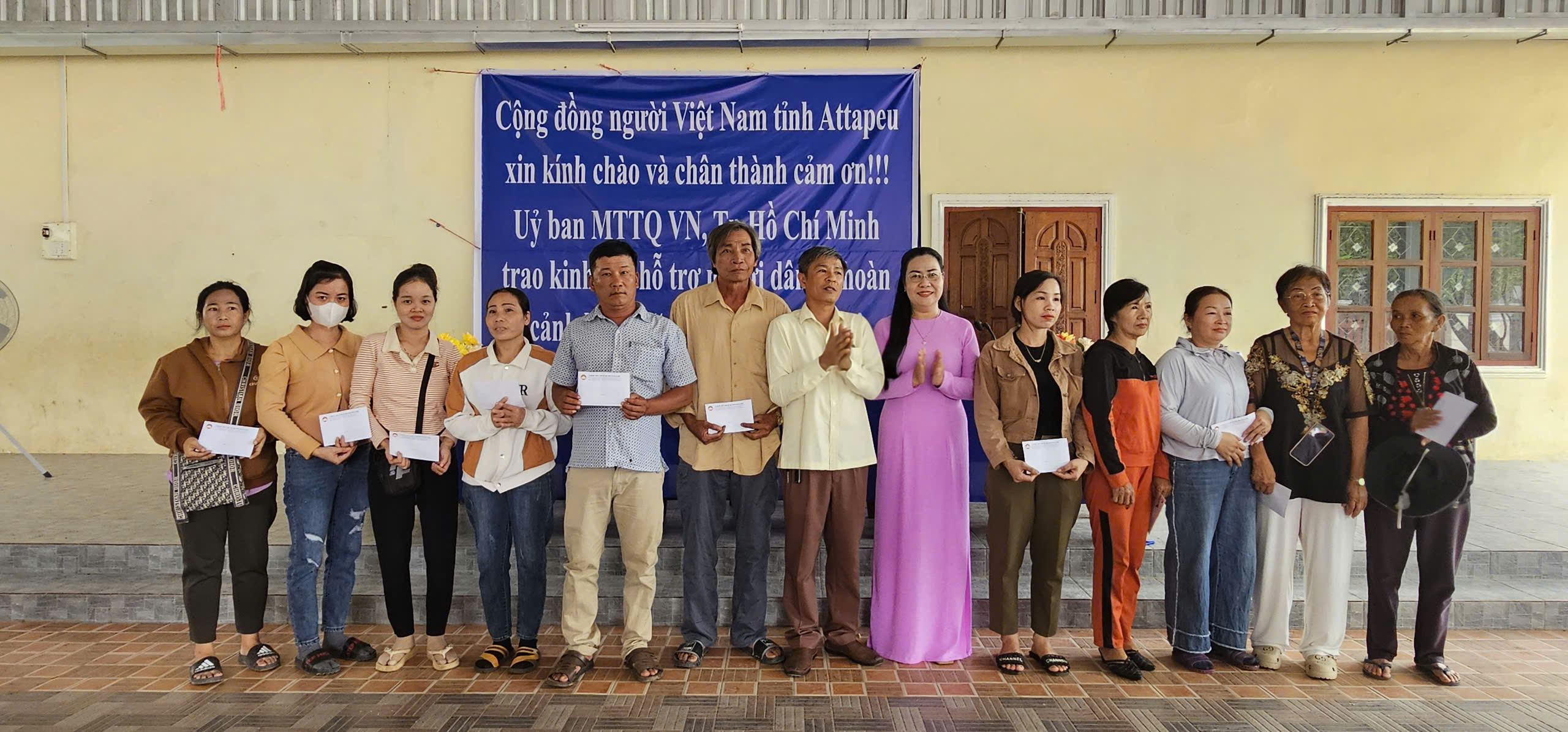 Nhân dịp này, bà Nguyễn Thị Kim Thúy đã đại diện Ban Thường trực Ủy ban MTTQ Việt Nam TP.Hồ Chí Minh trao tặng kinh phí 100 triệu đồng cho người dân Việt Nam và Lào có hoàn cảnh khó khăn tại tỉnh Attapeu.