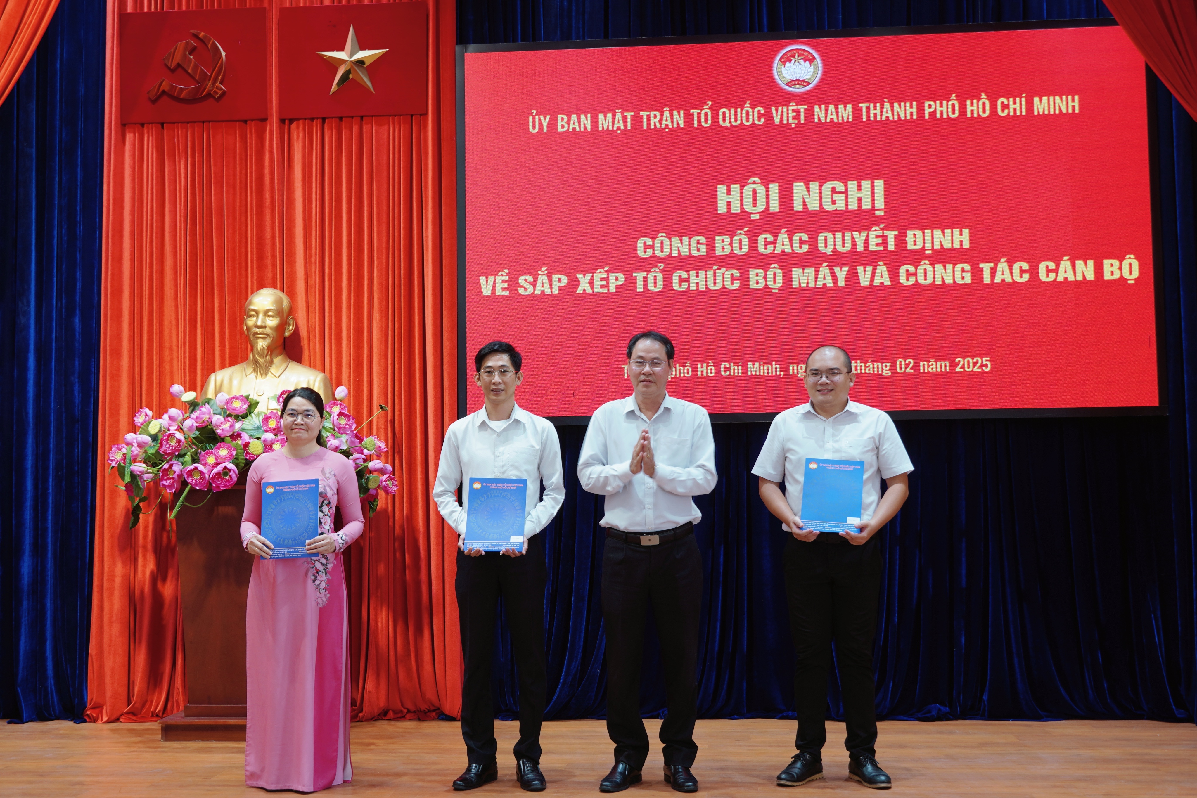 Chiều 28/2, Uỷ ban MTTQ Việt Nam TP.HCM tổ chức công bố quyết định sắp xếp tổ chức bộ máy và công tác cán bộ nhằm thực hiện các quy định của Đảng, chủ trương của Trung ương, Thành ủy về tiếp tục đổi mới, sắp xếp tổ chức bộ máy của hệ thống chính trị tinh gọn, hoạt động hiệu lực, hiệu quả.