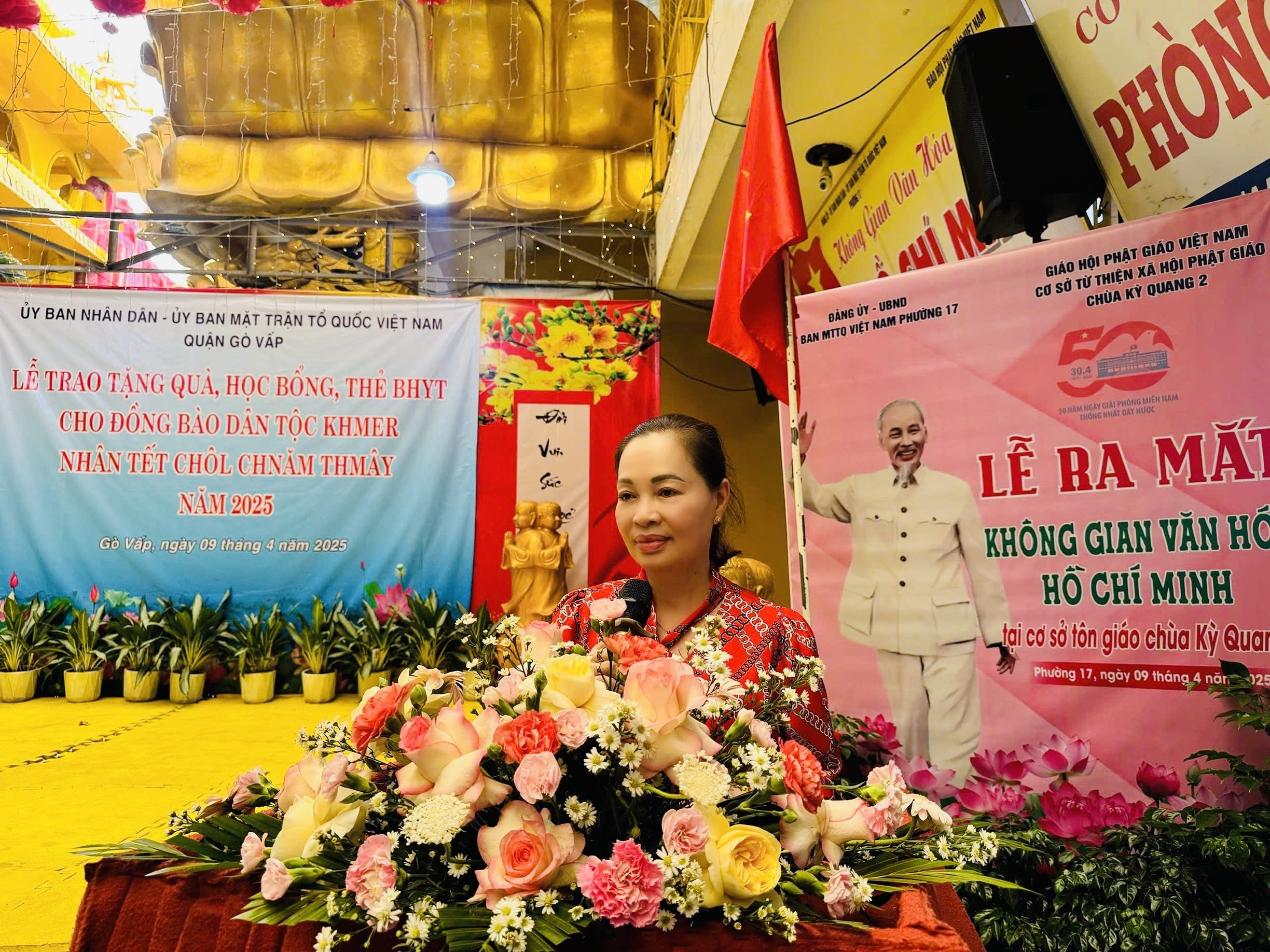 Thiết thực chào mừng Ngày văn hóa các dân tộc Việt Nam 19/4 tiến tới chào mừng kỷ niệm 50 năm ngày giải phóng Miền Nam thống nhất đất nước (30/4/1975 – 30/4/2025) và nhân dịp Tết cổ truyền Chôl Chnăm Thmây của đồng bào dân tộc Khmer. Các ngành, các cấp và hệ thống Mặt trận tổ chức nhiều hoạt động chào mừng. Chiều 9/4, Ủy ban Mặt trận Tổ quốc Việt Nam quận Gò Vấp tổ chức họp mặt, trao tặng quà cho các hộ Khmer có hoàn cảnh khó khăn trên địa bàn.