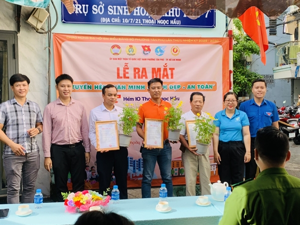 Ngày 12/8, tại hẻm số 10 Thoại Ngọc Hầu (phường Tân Phú), Ủy ban MTTQ Việt Nam phường Tân Phú đã tổ chức Lễ ra mắt Tuyến hẻm “Văn minh - Sạch đẹp - An toàn”. Công trình chào mừng Đại hội đại biểu Đảng bộ phường lần thứ I, nhiệm kỳ 2025 - 2030.
