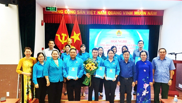 Lãnh đạo LĐLĐ TP.HCM và Ủy ban MTTQ Việt Nam phường trao quyết định chỉ định Ban Chấp hành, Ban Thường vụ và Chủ tịch Công đoàn phường Chợ Quán.