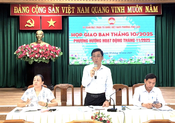 Ngày 30/10, Ủy ban MTTQ Việt Nam phường Phú Lâm tổ chức giao ban công tác Mặt trận tháng 10, triển khai phương hướng hoạt động tháng 11 năm 2025.