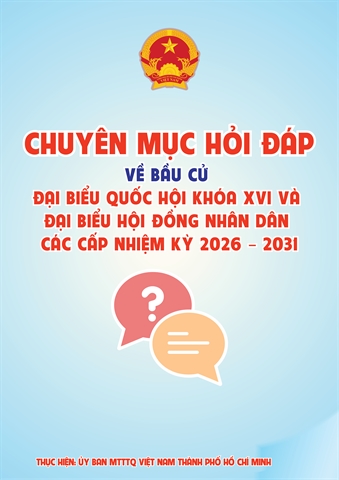 Nhằm chuẩn bị cho công tác tuyên truyền bầu cử đại biểu Quốc hội (ĐBQH) khóa XVI, đại biểu Hội đồng nhân dân (HĐND) các cấp, nhiệm kỳ 2026 - 2031. Được sự cho phép của Ban Thường trực Ủy ban MTTQ Việt Nam TP.HCM. Trang tin điện tử Ủy ban MTTQ Việt Nam TP.HCM trân trọng giới thiệu Chuyên mục "Hỏi và đáp" về bầu cử ĐBQH và đại biểu HĐND các cấp, nhiệm kỳ 2026 - 2031 dưới dạng sách điện tử.