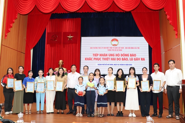 Chiều 3/12, Ban Thường trực Ủy ban MTTQ Việt Nam TP.HCM - Ban Vận động Cứu trợ TPHCM tổ chức tiếp nhận ủng hộ đồng bào khắc phục thiệt hại do bão lũ gây ra.