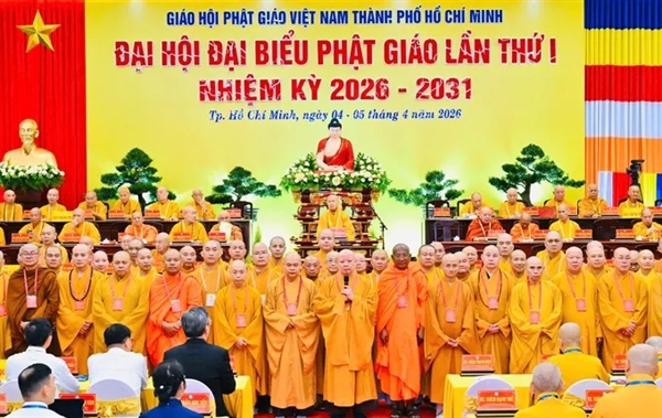 Sáng 5/4, Ban Trị sự Giáo hội Phật giáo Việt Nam TP.HCM tổ chức phiên chính thức Đại hội đại biểu Phật giáo TP.HCM lần thứ I, nhiệm kỳ 2026 - 2031, với sự tham dự của khoảng 600 đại biểu.