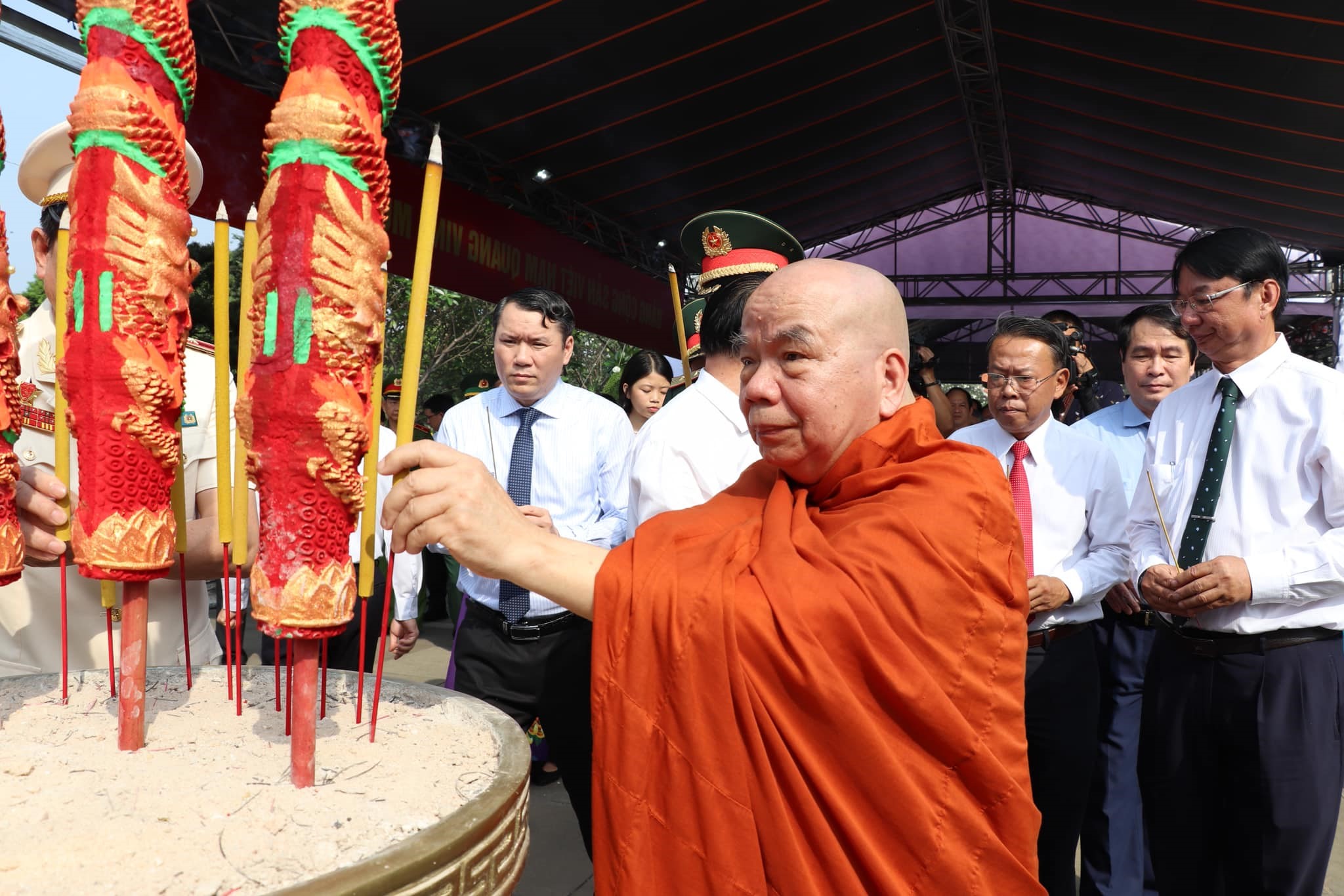 Tại Nghĩa trang thành phố, các đại biểu đã dành phút mặc niệm và dâng hương, dâng hoa tưởng nhớ anh linh các anh hùng liệt sĩ. Tiếp đó, đoàn dâng hương, dâng hoa và dành phút mặc niệm KTS.Huỳnh Tấn Phát - một nhà trí thức yêu nước, có uy tín lớn, một lãnh đạo luôn thể hiện tinh thần trách nhiệm trước Đảng, trước Nhân dân, là tấm gương tiêu biểu cho đoàn kết dân tộc, đoàn kết quốc tế.
