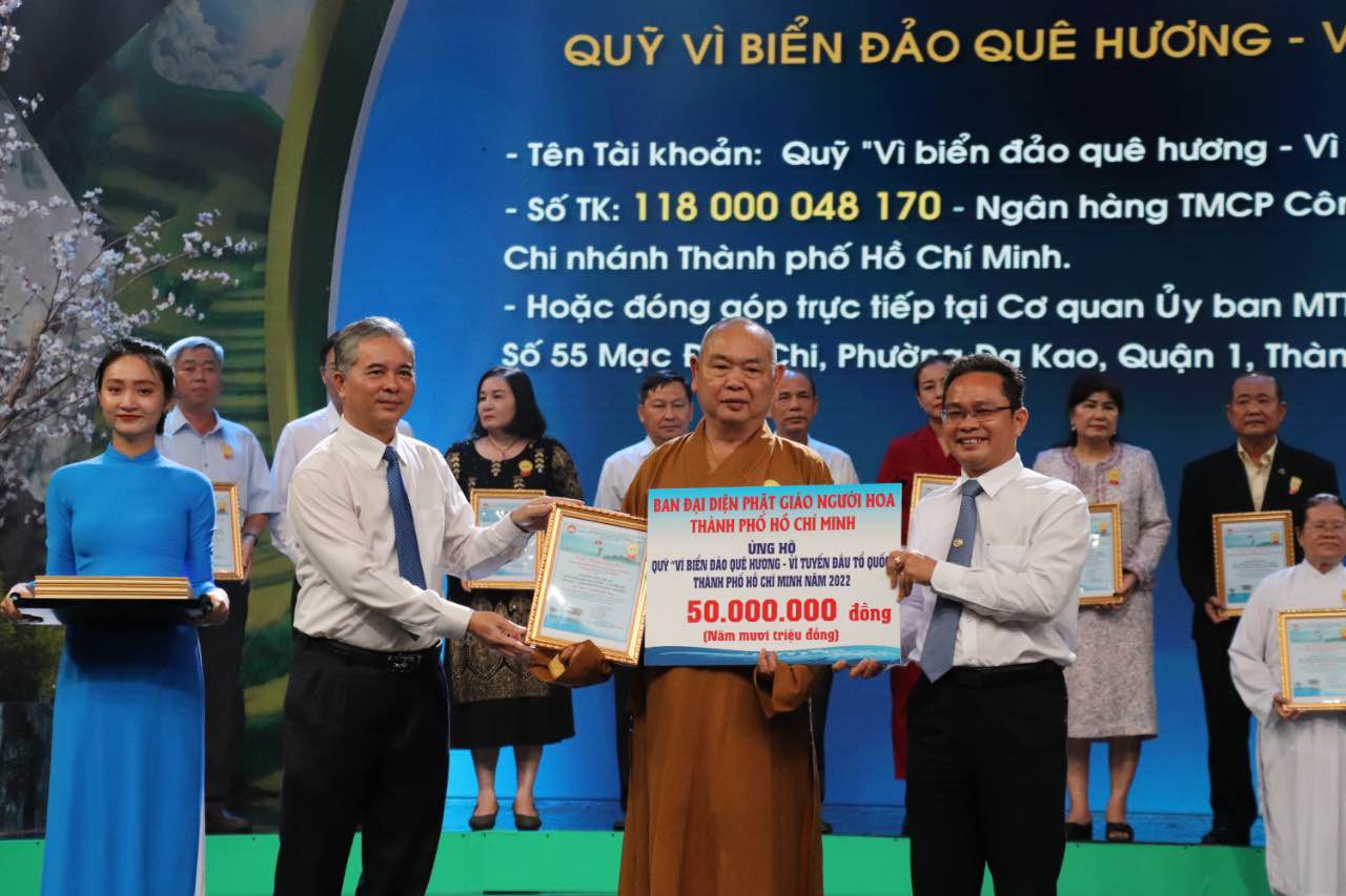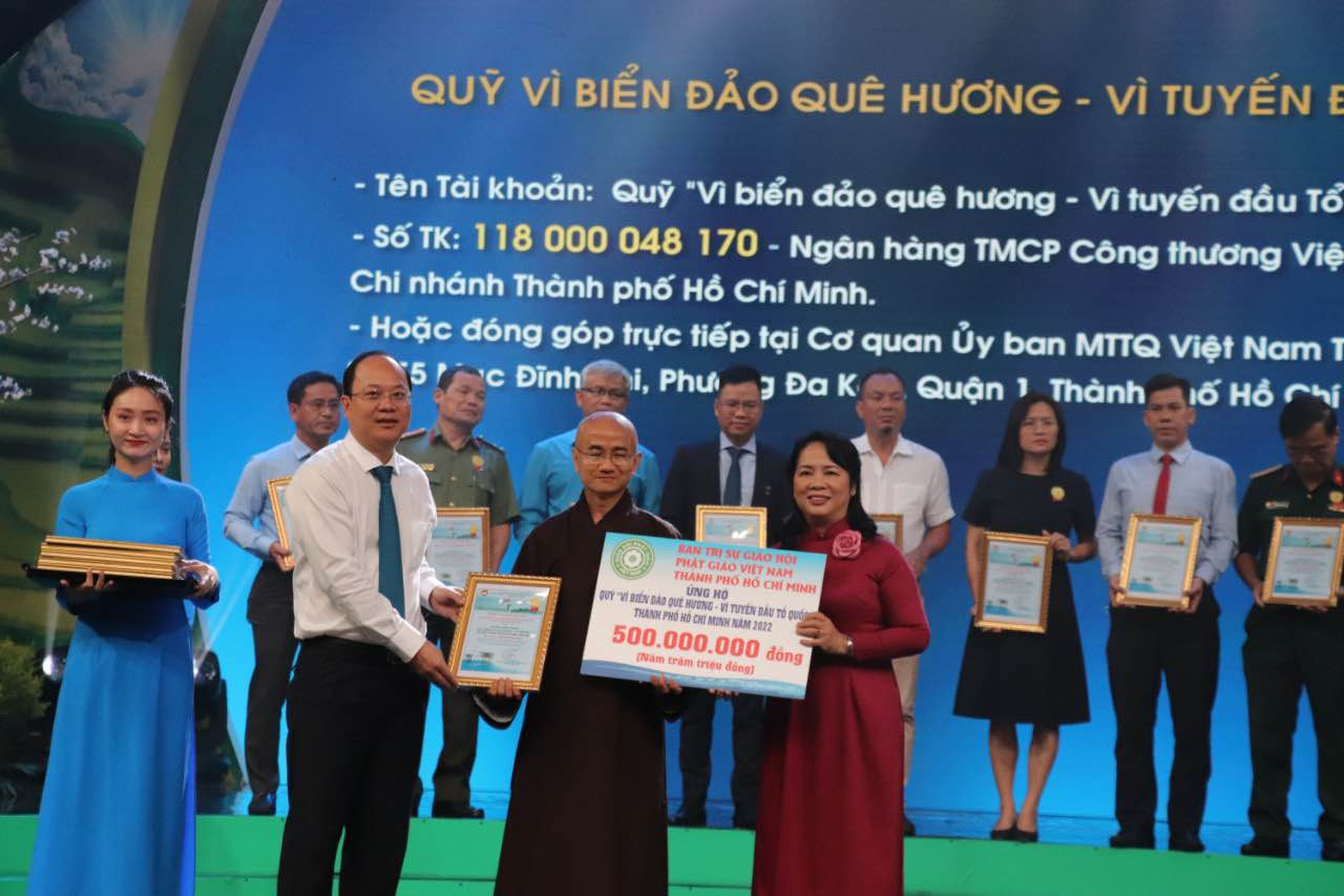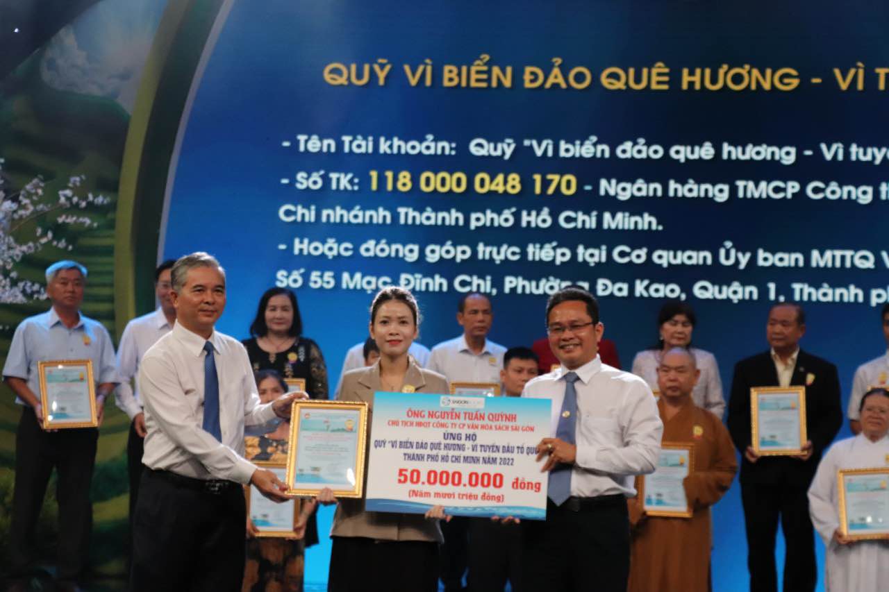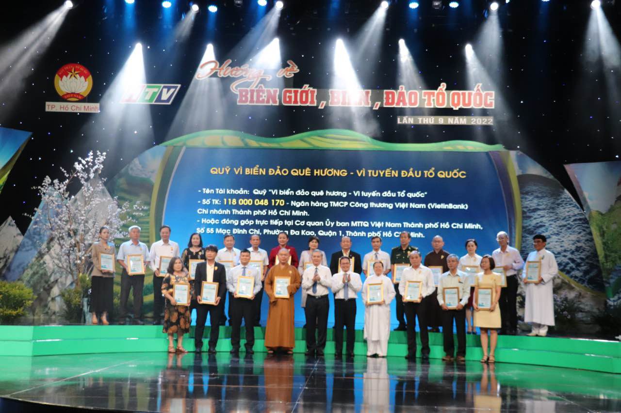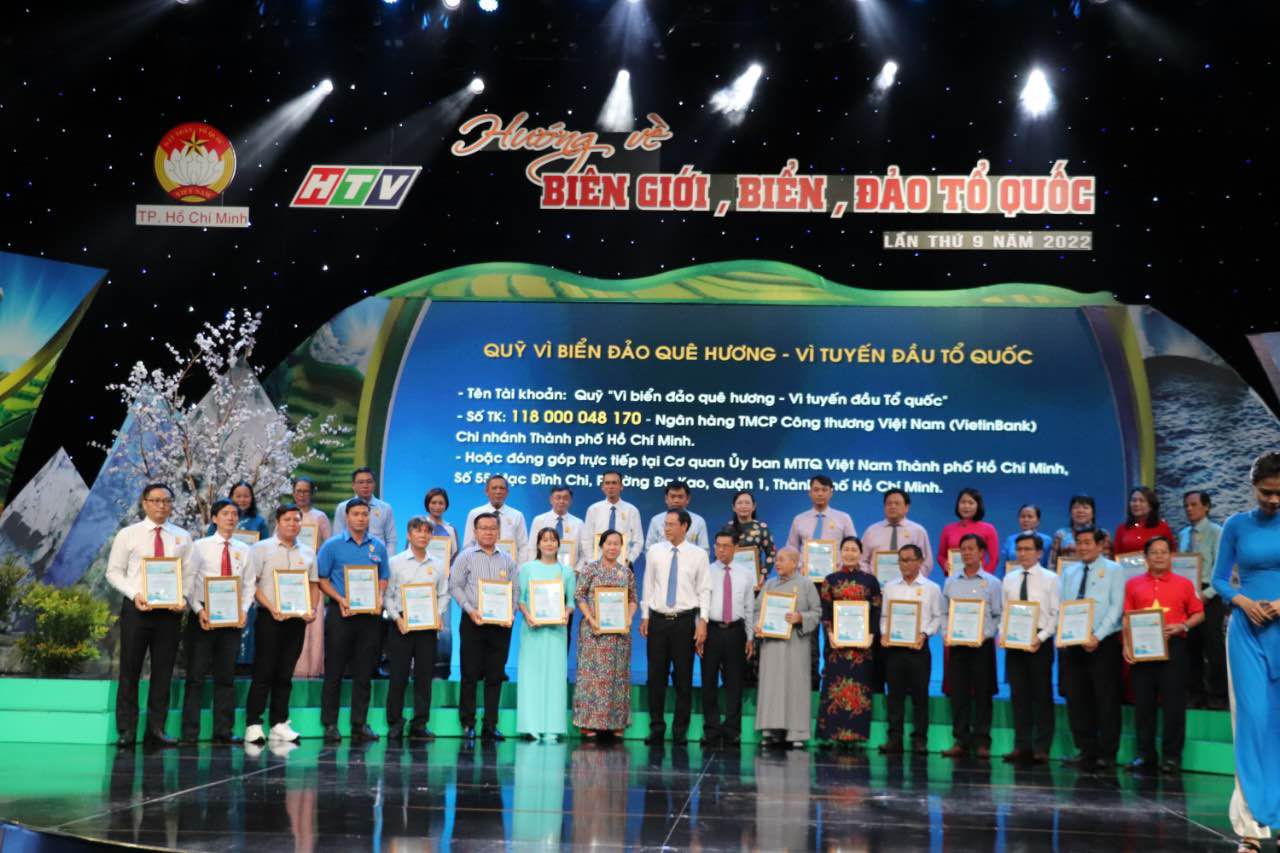 Tối 09/8, Ban Thường trực Ủy ban MTTQ Việt Nam TP. Hồ Chí Minh - Hội đồng quản lý Quỹ “Vì biển đảo quê hương - Vì tuyến đầu Tổ quốc” Thành phố, phối hợp cùng Đài Truyền hình TP. Hồ Chí Minh tổ chức Chương trình giao lưu nghệ thuật "Hướng về biên giới, biển, đảo Tổ quốc lần 9 năm 2022” tiếp tục tuyên truyền, vận động ủng hộ Quỹ “Vì biển đảo quê hương - vì tuyến đầu Tổ quốc”.