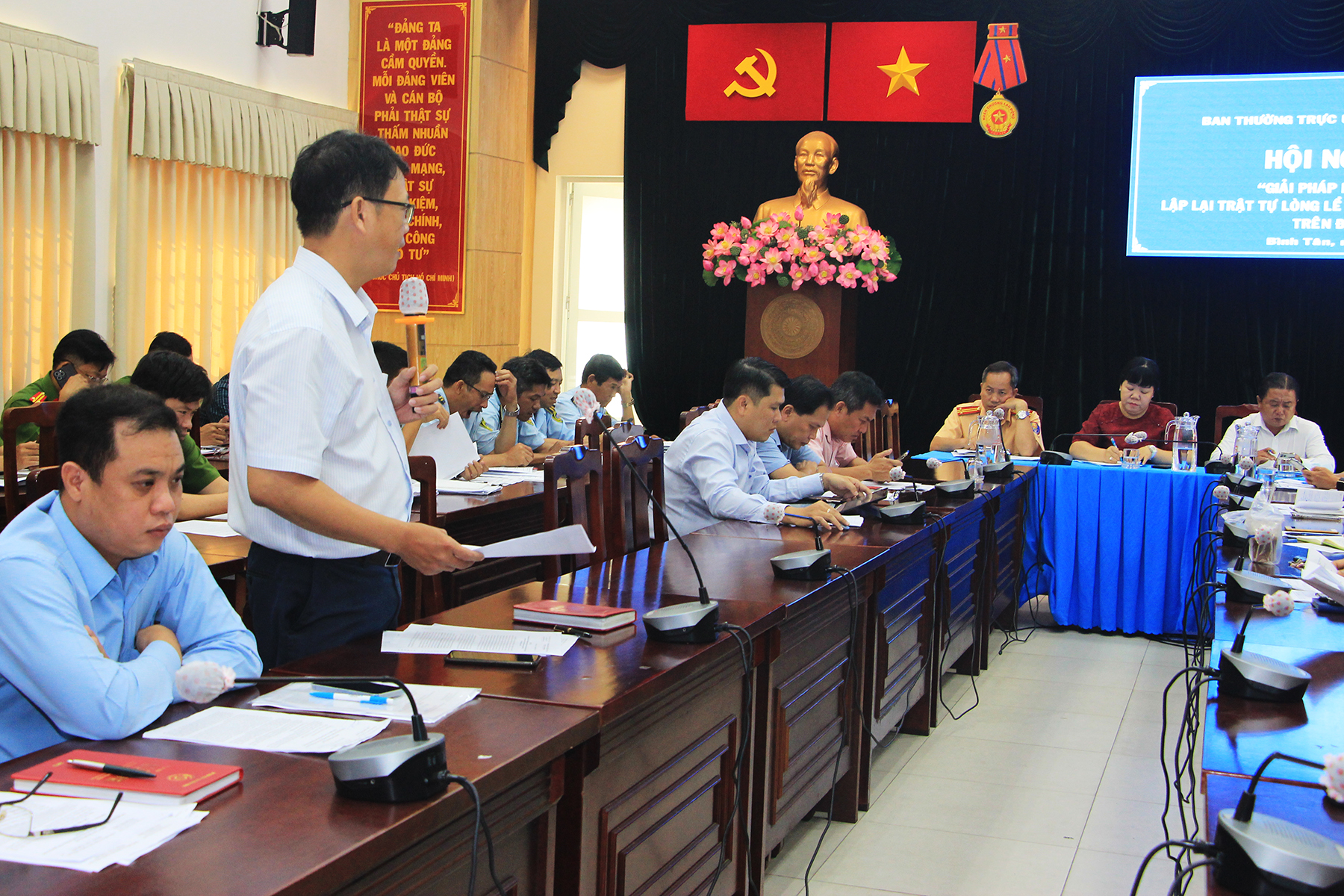 Tại hội nghị, các đại biểu tham dự còn nghe báo cáo tham luận của UBMTTQVN các phường: Bình Hưng Hòa, Bình Hưng Hòa A, Bình Trị Đông B và Tân Tạo A. Sau phần gợi ý một số nội dung của Đội trưởng Đội Trật tự đô thị quận Bình Tân Nguyễn Hồng Xuân và Đội phó Đội Cảnh sát giao thông quận Bình Tân Trần Văn Trọng, nhiều đại biểu nêu ý kiến, kiến nghị liên quan đến: quyền hạn của Công an phường trong giải quyết và xử lý hành chính các vụ vi phạm về trật tự lòng, lề đường, vỉa hè và tai nạn giao thông; cần kiểm tra, tuần tra thường xuyên, liên tục những điểm nóng về hiện trạng chợ tự phát; tăng cường công tác tuyên truyền, vận động phong phú, đa dạng đối với người bán, người mua, người cho thuê mặt bằng kinh doanh buôn bán lấn chiếm vỉa hè, lòng, lề đường gây ách tắc giao thông, cản lối người bộ hành; đối với các địa phương có nhiều phường (xã), quận (huyện) giáp ranh, lãnh đạo địa phương đó cần ký kết liên tịch chương trình, kế hoạch, giải pháp phối hợp đồng bộ ra quân lập lại trật tự lòng, lề đường…