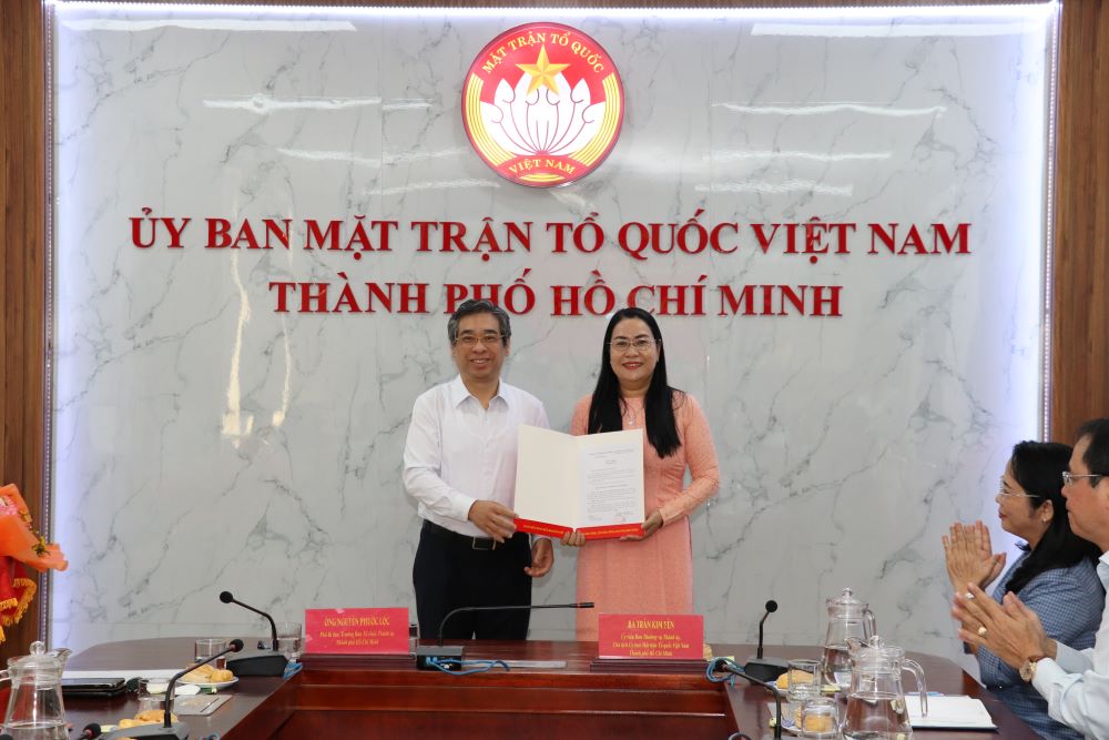 Tại buổi lễ, Phó Bí thư Thành ủy, Trưởng Ban Tổ chức Thành ủy Nguyễn Phước Lộc đã trao quyết định của Ban Thường vụ Thành ủy TP.HCM về việc điều động cán bộ. Theo đó, Ban Thường vụ Thành ủy TP.HCM điều động bà Nguyễn Thị Kim Thúy, Bí thư Đảng ủy Khối Cơ sở Bộ Giao thông vận tải đến nhận công tác tại Ủy ban MTTQ Việt Nam TP.HCM, để được giới thiệu hiệp thương vào Ủy ban MTTQ Việt Nam Thành phố và cử giữ chức vụ Phó Chủ tịch.
