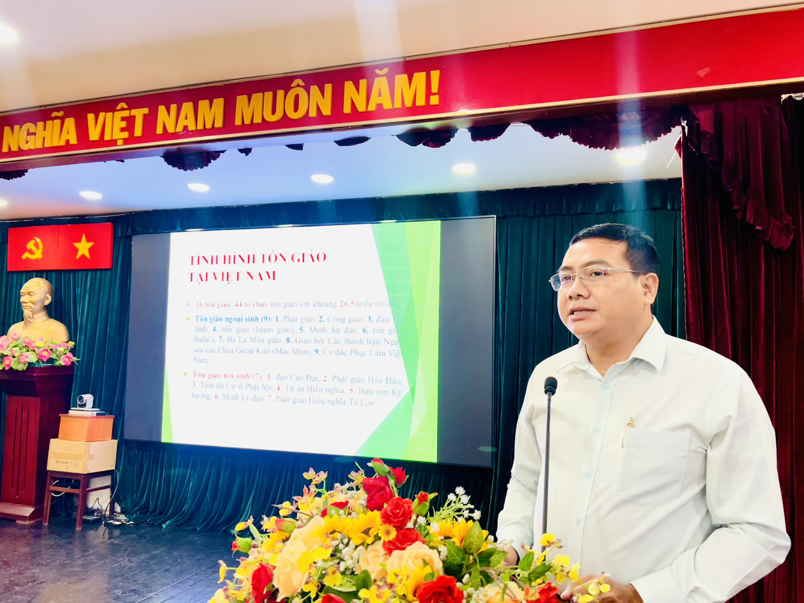 Đồng thời, báo cáo viên cũng nêu ra những điểm đặc biệt đáng lưu ý trong công tác Dân tộc - Tôn giáo để các đại biểu nghiên cứu. Hướng dẫn các Trưởng ban CTMT mới nắm bắt được các nội dung chính yếu của công tác Dân tộc - Tôn giáo để từ đó, thực hiện có hiệu quả và chất lượng công tác tuyên truyền, vận động các vị ton giáo, các vị có uy tín trong đồng bào dân tộc thiểu số tham gia các hoạt động phong trào tại địa phương; việc tuyên truyền nhằm củng cố niềm tin của đồng bào dân tộc tôn giáo với Đảng, Nhà nước, nâng cao nhận thức và ý thức tự giác chấp hành chủ trương, đường lối của Đảng, chính sách, pháp luật của Nhà nước;