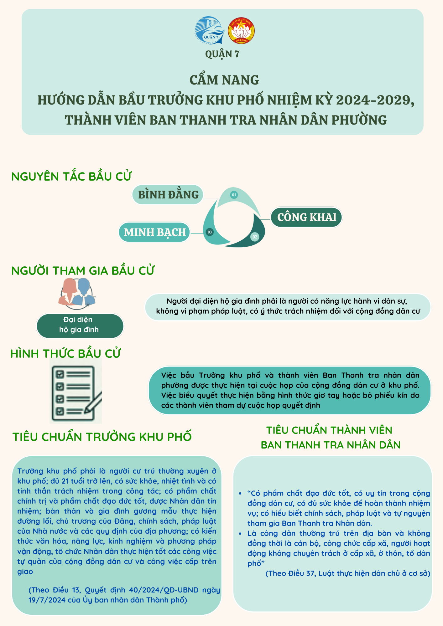 Để công tác bầu cử diễn ra dân chủ, công khai, an toàn, đúng luật và đạt kết quả cao, các phường trên địa bàn Quận 7 đã đẩy mạnh công tác tuyên truyền, quán triệt các văn bản về công tác bầu cử tới cán bộ, đảng viên và Nhân dân; đặc biệt tuyên truyền cẩm nang bầu cử Trưởng khu phố nhiệm kỳ 2024-2029 và thành viên Ban Thanh tra Nhân dân phường trên hệ thống loa phát thanh, trên các phương tiện thông tin đại chúng của quận và phường. Đồng thời, các khu phố thực hiện tốt công tác nhân sự, đáp ứng các tiêu chuẩn theo quy định; đảm bảo cơ sở vật chất, tình hình an ninh, trật tự tạo điều kiện thuận lợi phục vụ công tác bầu cử.