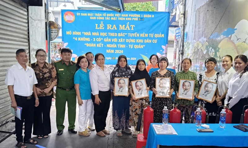 Khu phố 3, 4 Phường 1 Quận 8 là khu vực tập trung nhiều người Chăm sinh sống. Những năm qua, đồng bào Chăm nơi đây luôn tích cực hưởng ứng các phong trào, cuộc vận động do Ban Công tác Mặt trận Khu phố triển khai thực hiện. Trong năm 2024, nhằm triển khai sâu rộng không gian văn hóa Hồ Chí Minh và xây dựng Khu dân cư Đoàn kết – Nghĩa tình – Tự quản trong đồng bào dân tộc Chăm, Ban công tác Mặt trận khu phố đã vận động các hộ dân chung tay thực hiện hẻm tự quản 4 không – 3 có và treo ảnh chân dung Hồ Chủ tịch ở vị trí trang trọng trong nhà.