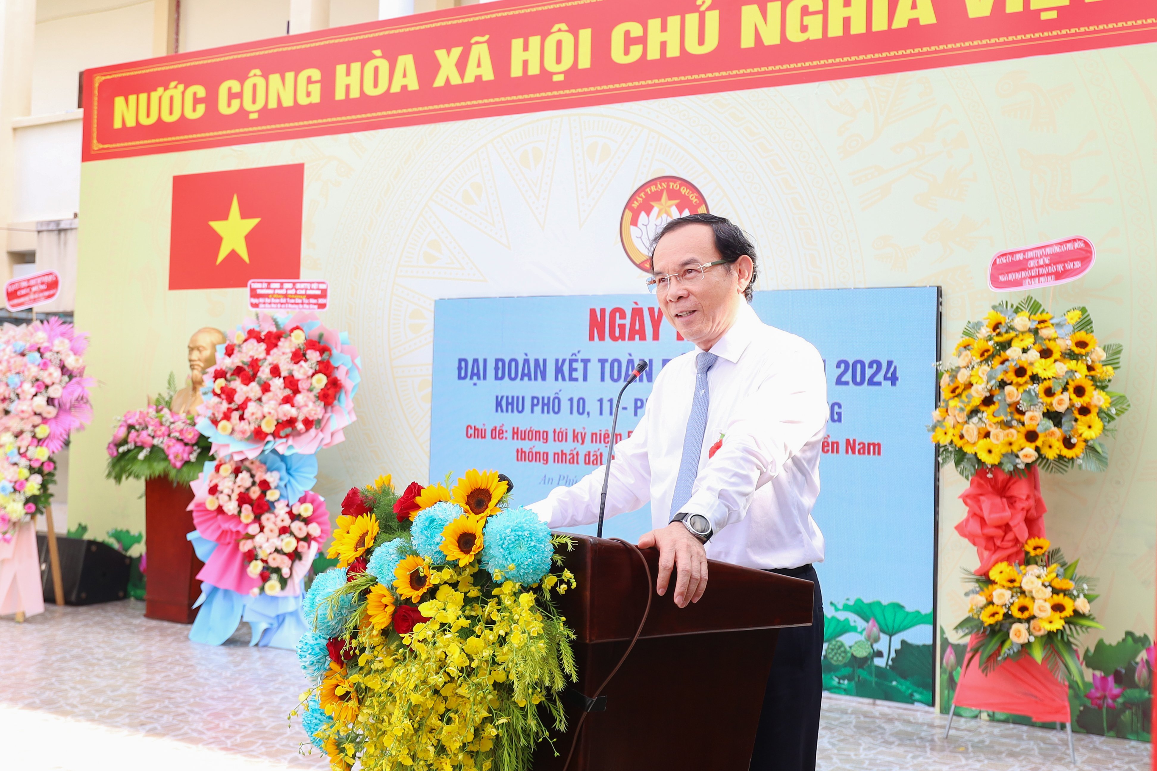 Sáng 17/11, tại Trường THCS An Phú Đông, Ban công tác Mặt trận liên khu phố 10 và 11, phường An Phú Đông, Quận 12 đã tổ chức Ngày hội Đại đoàn kết toàn dân tộc năm 2024, Chủ đề: Hướng tới chào mừng kỷ niệm 50 năm Ngày giải phóng miền Nam, thống nhất đất nước (30/4/1975 - 30/4/2024).