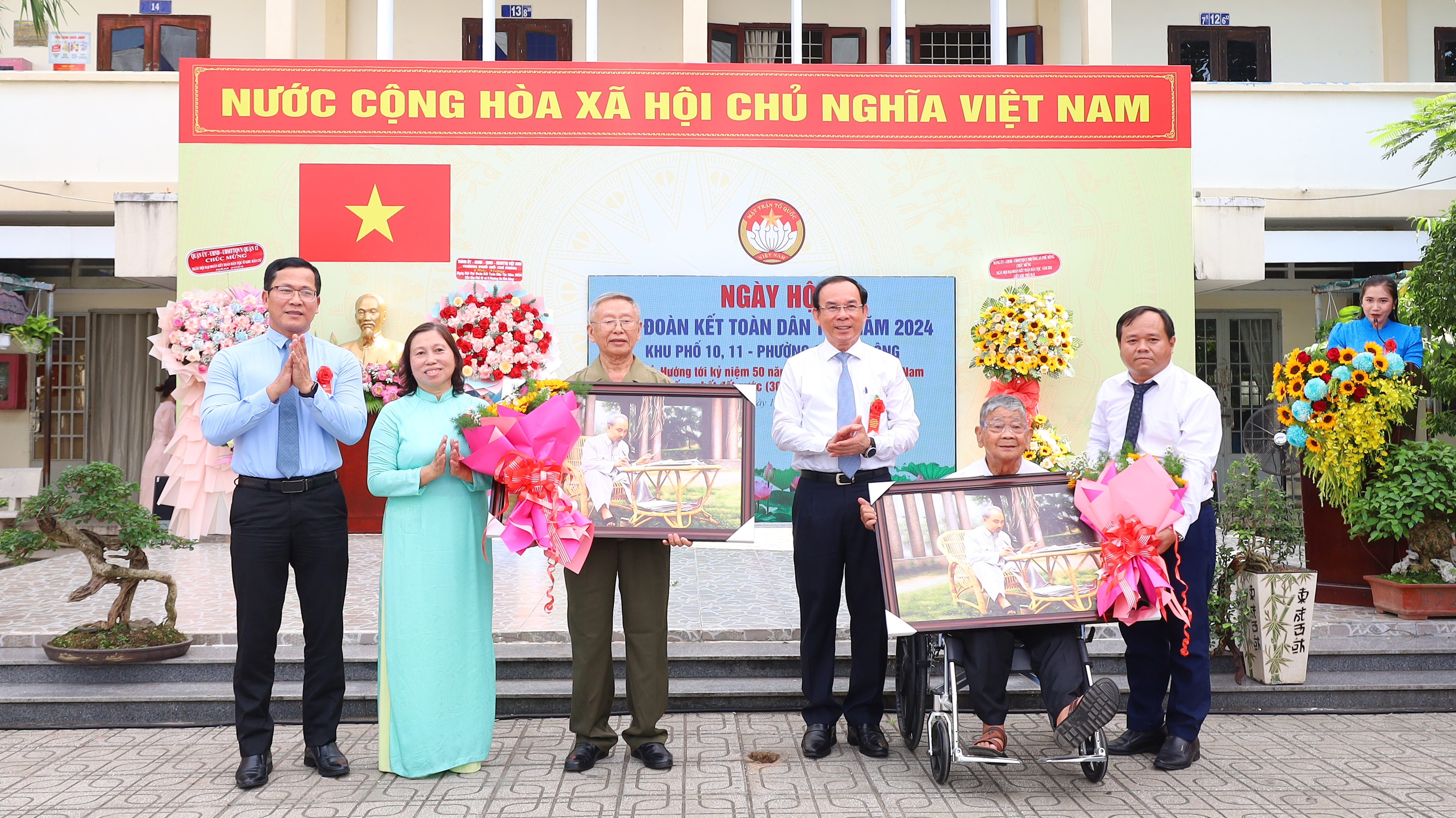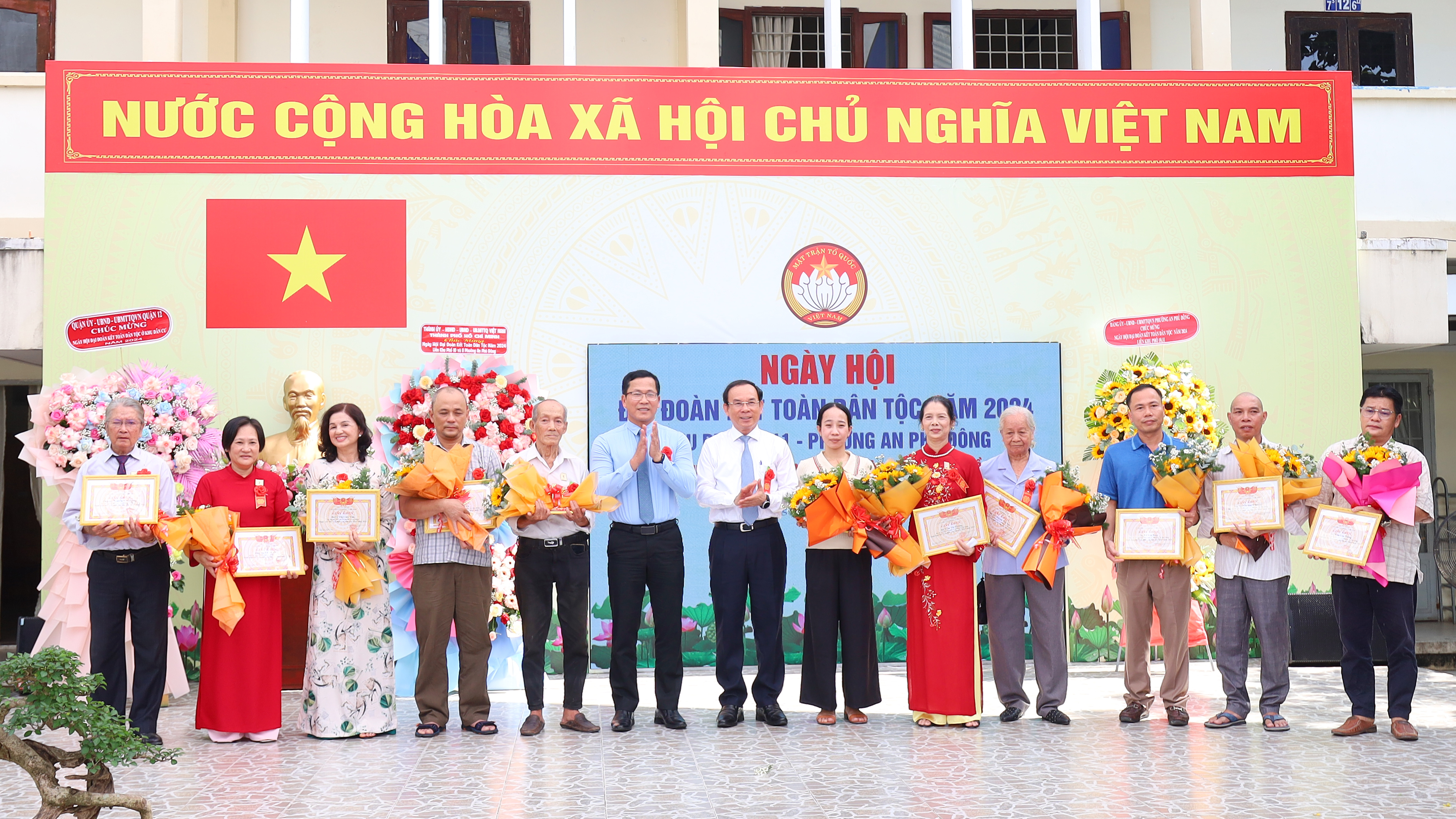 Đến dự có đồng chí Nguyễn Văn Nên, Ủy viên Bộ Chính trị, Bí thư Thành ủy TPHCM; đồng chí Võ Văn Thiện, Trưởng Ban Công tác phía Nam Ủy ban Trung ương MTTQ Việt Nam; đồng chí Nguyễn Thành Trung, Phó Chủ tịch Thường trực Ủy ban MTTQ Việt Nam TPHCM; đồng chí Trần Hoàng Danh - Bí thư Quận ủy 12; đồng chí Nguyễn Văn Đức, Phó Bí thư Quận ủy, Chủ tịch UBND Quận 12; đồng chí Lê Tấn Tài, Ủy viên Thường vụ Quận ủy, Chủ tịch Ủy ban MTTQ Việt Nam Quận 12.