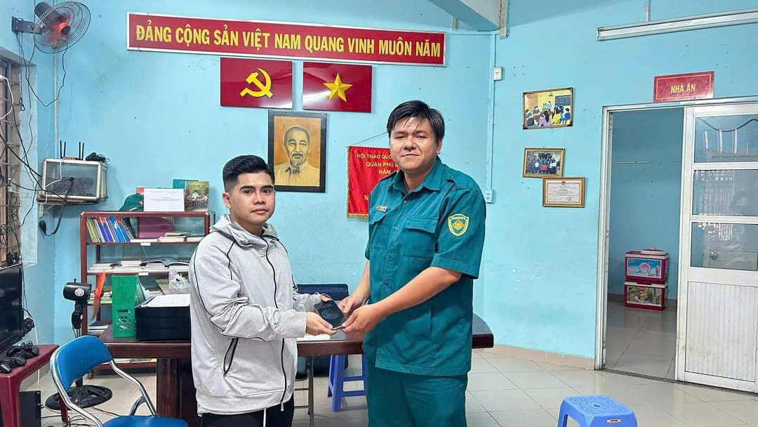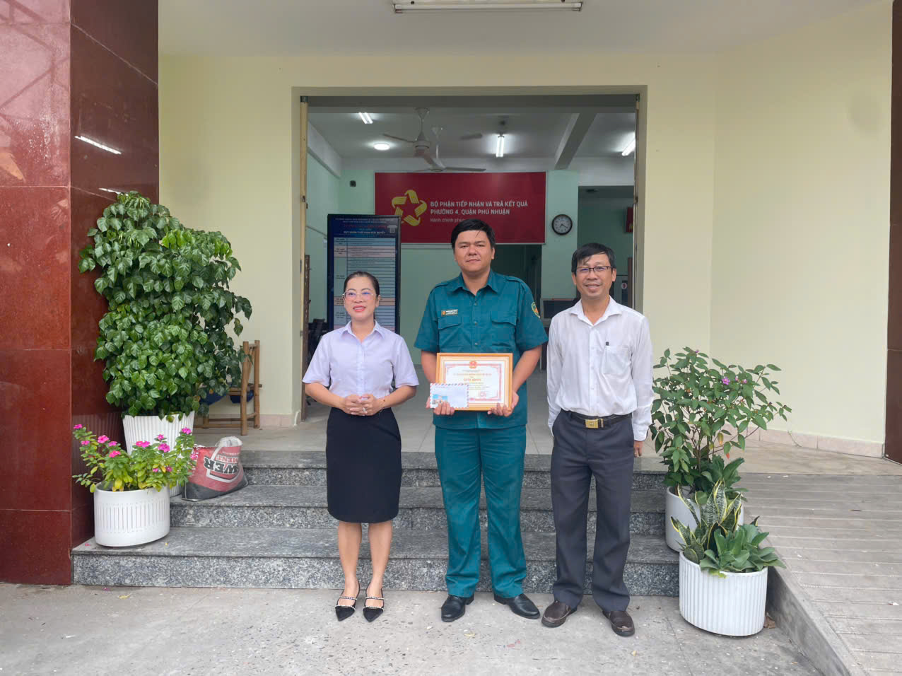 Trước đó, lúc 11 giờ, ngày 29/11/2024 anh Nguyễn Thanh Trung - Phó chỉ huy trưởng Ban Chỉ huy Quân sự phường 4, Quận Phú Nhuận đang trên đường đi làm nhiệm vụ, phát hiện thấy 1 chiếc điện thoại còn khá mới bị đánh rơi tại ngã tư đường Phan Xích Long và đường Nguyễn Công Hoan, phường 7, quận Phú Nhuận. Anh Trung đã nhặt, tiến hành kiểm tra và báo về cho cấp trên, sau đó liên hệ xác minh để trao trả lại chiếc điện thoại trên về chủ nhân là anh Lê Trọng Ân, SN 1996, ngụ Bùi Đình Túy phường 12, quận Bình Thạnh, thành phố Hồ Chí Minh.