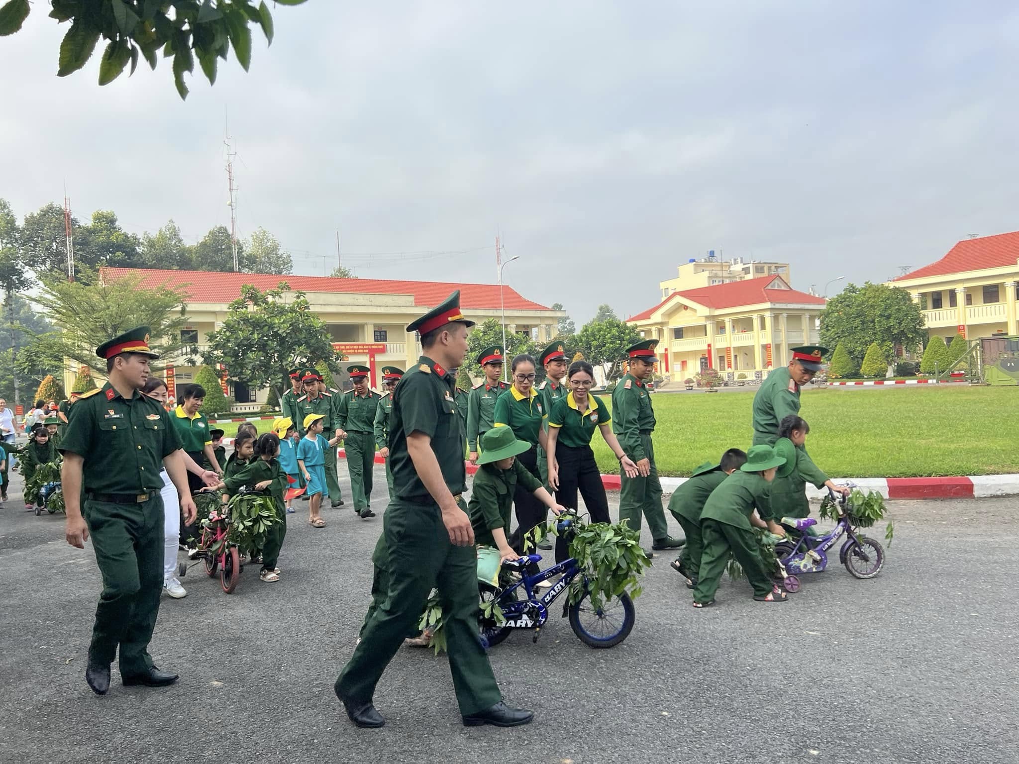 Ủy ban MTTQ Việt Nam phường cùng các em thiếu nhi chụp hình lưu niệm với Tiểu đoàn Tác chiến điện tử D97