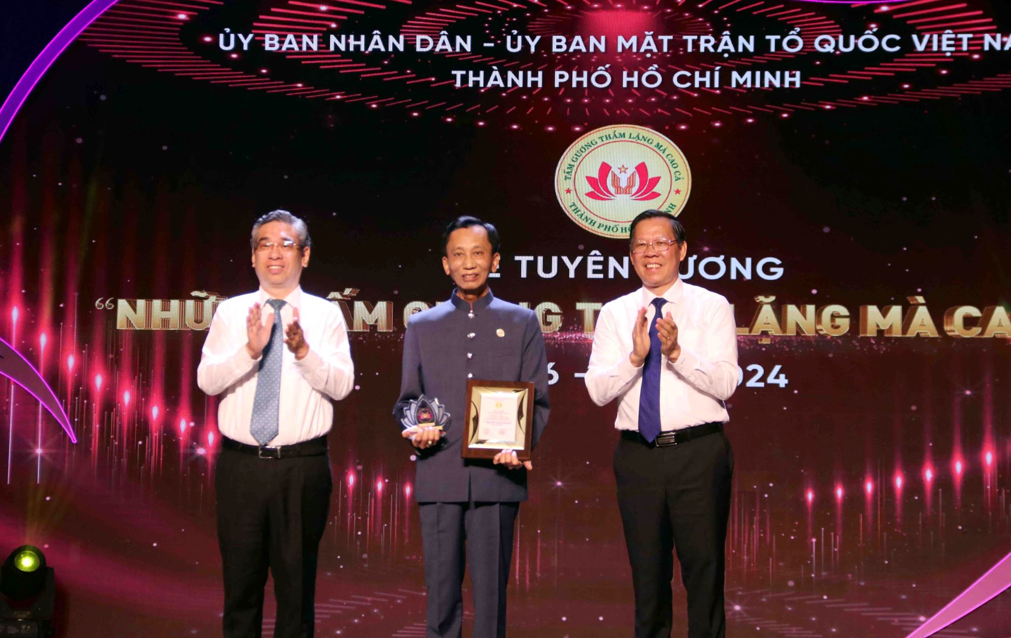 Nhân dịp này, Ban Tổ chức cũng đã trao kỷ niệm chương và Bằng khen của UBND Thành phố cho 17 tập thể và 23 cá nhân. Được biết, từ 234 hồ sơ đề nghị xét chọn (65 tập thể, 169 cá nhân), Hội đồng xét chọn, tuyên dương “Những tấm gương thầm lặng mà cao cả” trong phong trào thi đua yêu nước của TP.HCM lần 6, năm 2024 đã họp và cho ý kiến thống nhất chọn tuyên dương cho các tập thể và cá nhân nêu trên. Qua 6 lần tổ chức, TP.HCM đã tuyên dương 621 tập thể, cá nhân tiêu biểu.