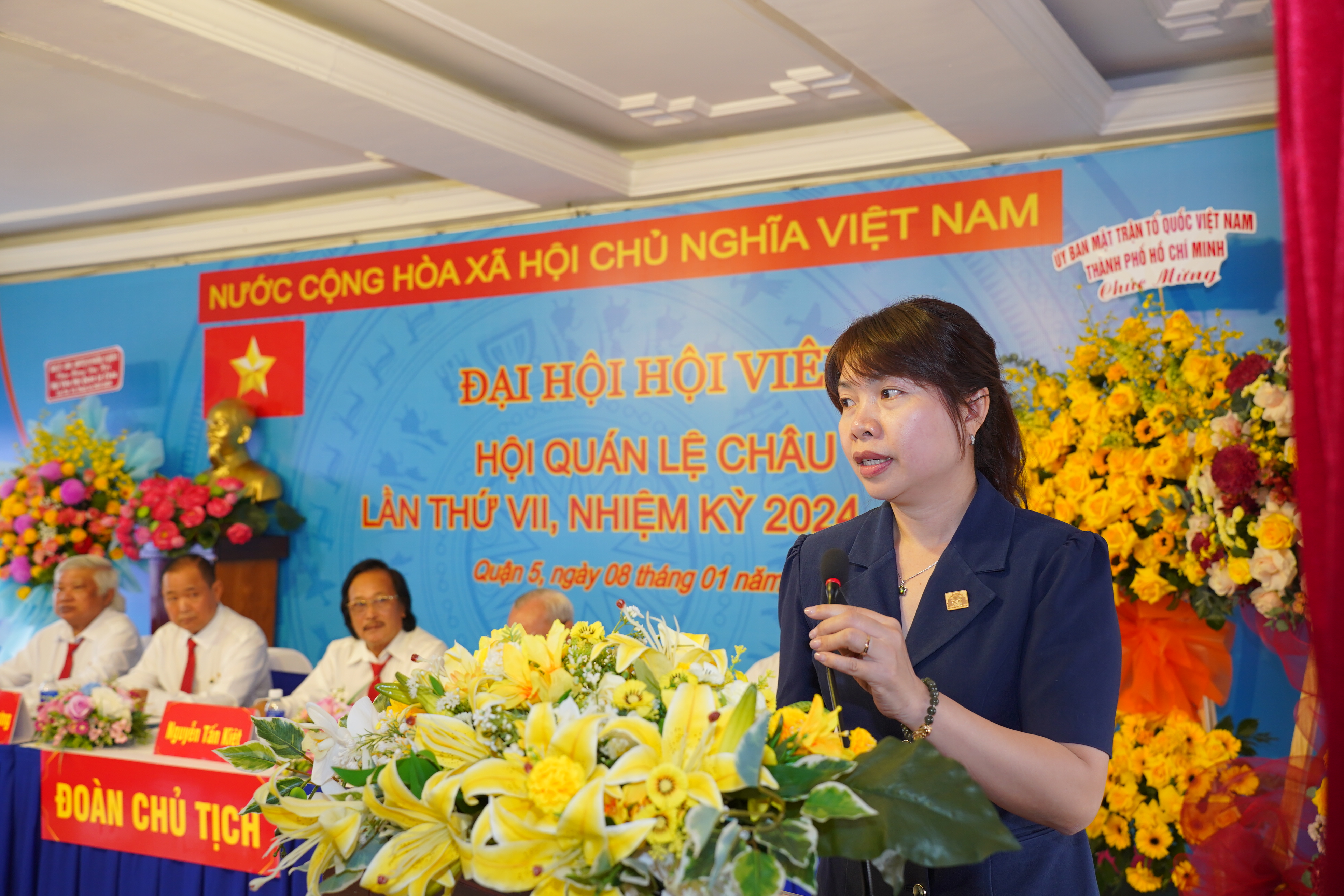 Phát biểu tại đại hội, bà Nguyễn Ngọc Cẩm – Phó Chủ tịch Ủy ban MTTQ Việt Nam Quận 5 đã ghi nhận những nỗ lực, cố gắng và những kết quả đã đạt được của Ban quản trị trong nhiệm kỳ qua; đồng thời tin tưởng trong nhiệm kỳ mới, Ban quản trị Hội quán sẽ tiếp tục điều hành, xây dựng Hội quán ngày càng phát triển; lưu giữ trọn vẹn những nét đẹp giá trị tinh thần, giá trị lịch sử - văn hóa, truyền thống đoàn kết gắn bó, quang đại nghiệp Tổ, đóng góp vào sự nghiệp giữ gìn và phát huy di tích kiến trúc nghệ thuật cấp quốc gia.
