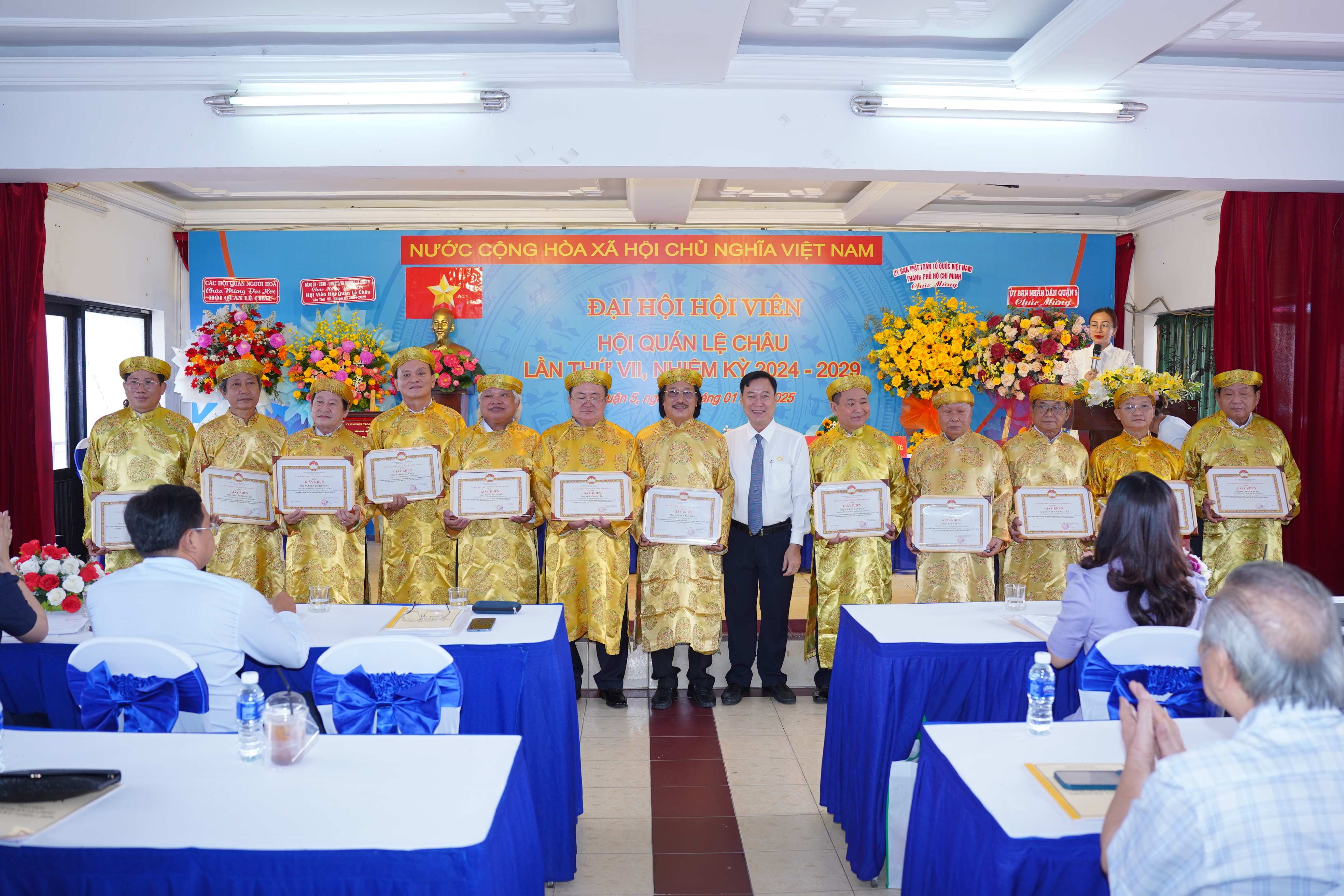 Trong khuôn khổ Đại hội, Ban Tổ chức đã trao Bằng khen của Ủy ban MTTQ Việt Nam Quận 5 cho 01 tập thể và 23 cá nhân đã có nhiều đóng góp tích cực trong các hoạt động của Hội quán Lệ Châu nhiệm kỳ 2019 – 2024 và phong trào thi đua của MTTQ Việt Nam Quận 5