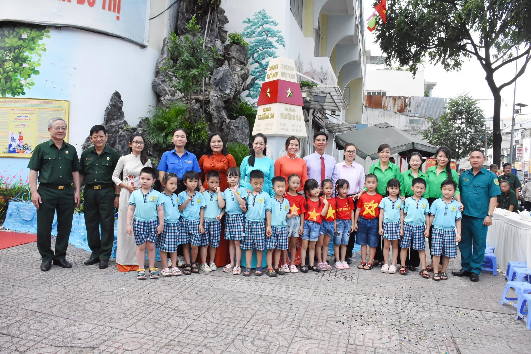 Lãnh đạo Quận 10 chụp hình lưu niệm tại Cột móc đảo Trường Sa