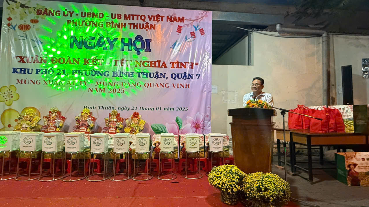 Với mong muốn mang sắc xuân rạng rỡ, không khí ấm áp màu xuân sum họp; tối ngày 21/1, khu phố 21 phường Bình Thuận Quận 7 tổ chức Ngày hội “Xuân đoàn kết – Tết nghĩa tình” với các hoạt động giữ gìn nét truyền thống văn hóa, chuẩn bị đón Tết nguyên đán Ất Tỵ năm 2025 trên địa bàn khu phố.