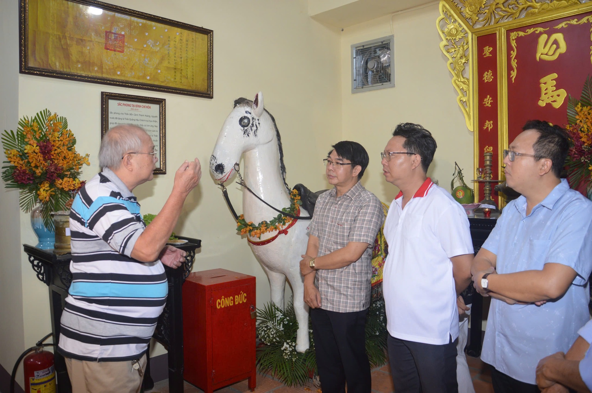 Đại diện Ban quản trị Đền Chí Hòa thông tin quá trình hình thành lịch sũ Đền Chí Hòa và Lễ hội Kỳ Yên