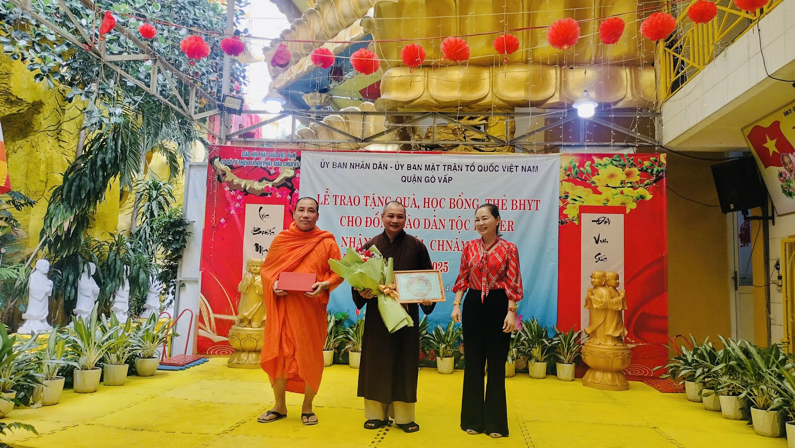 Đại Đức Thích Quang Nghĩa/Chánh thư ký Ban trị sự Giáo hội Phật giáo Việt Nam quận Gò Vấp - Chức sắc tôn giáo tiêu biểu người dân tộc Khmer - đại diện cộng đồng dân tộc Khmer và hứa quyết tâm lao động sản xuất, cải thiện cuộc sống, có nhiều đóng góp tích cực cho khối đại đoàn kết toàn dân tộc của quận