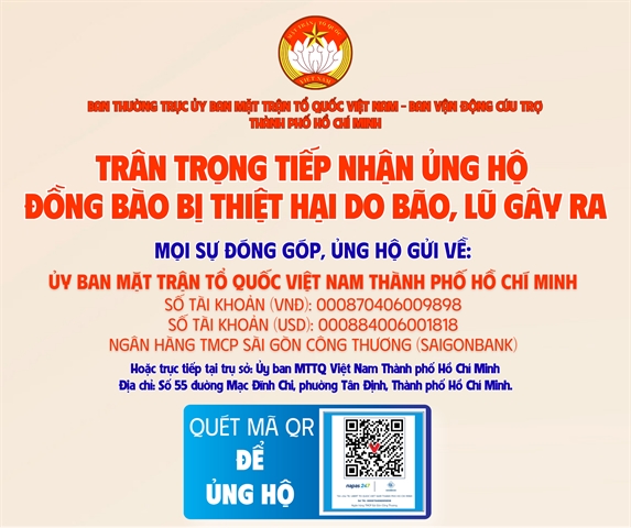 Hưởng ứng lời kêu gọi của Đoàn Chủ tịch Ủy ban Trung ương MTTQ Việt Nam, phát huy truyền thống đoàn kết quý báu của dân tộc ta, với tinh thần tương thân, tương ái; Ủy ban MTTQ Việt Nam TP.HCM kêu gọi nhân dân, các cơ quan, tổ chức, doanh nghiệp trên địa bàn thành phố, dành những sự sẻ chia, giúp đỡ về tinh thần, vật chất, góp phần hỗ trợ đồng bào khắc phục thiệt hại do bão, lũ xảy ra trong thời gian vừa qua. Đồng thời, khuyến khích cán bộ, công chức, viên chức, chiến sĩ các lực lượng vũ trang, người hưởng lương từ ngân sách nhà nước... mỗi người đóng góp ít nhất một ngày lương.