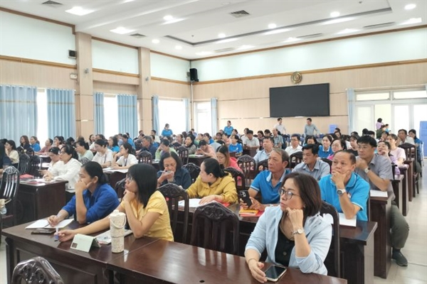 Cán bộ Công đoàn phường Vĩnh Hội và phường Xóm Chiếu học tập Nghị quyết Đại hội Công đoàn TP.HCM