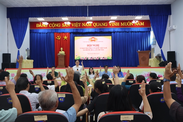Chiều 29/7, Ủy ban MTTQ Việt Nam xã Phước Hòa đã tổ chức Hội nghị lần thứ 2 nhằm củng cố, kiện toàn Ban Thanh tra nhân dân (Ban TTND) và Ban công tác Mặt trận (Ban CTMT) các ấp trong bối cảnh chính quyền địa phương 2 cấp được triển khai trên địa bàn TP.HCM...