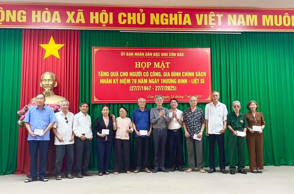 Nhân kỷ niệm 78 năm ngày Thương binh - Liệt sỹ 27/7, Đảng ủy - HĐND - UBND Ủy ban MTTQ Việt Nam đặc khu Côn Đảo đã tổ chức họp mặt, tặng quà các gia đình chính sách, người có công, thân nhân liệt sỹ, thương binh, bệnh binh đang sinh sống trên địa bàn đặc khu