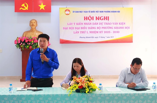 Ngày 25/7, Ủy ban MTTQ Việt Nam phường Khánh Hội tổ chức Hội nghị lấy ý kiến nhân dân về dự thảo văn kiện Đại hội đại biểu Đảng bộ phường Khánh Hội lần thứ I, nhiệm kỳ 2025 - 2030.