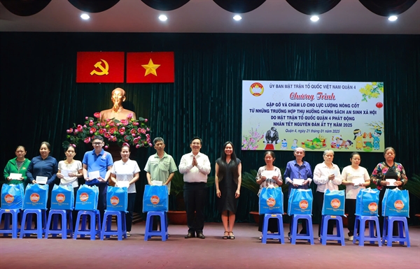 Ủy ban MTTQ Việt Nam Quận 4 đã phối hợp cùng các tổ chức chính trị - xã hội và vận động các doanh nghiệp, các cơ sở tôn giáo, các mạnh thường quân trên địa bàn triển khai Chương trình trao tặng quà Tết Ất Tỵ năm 2025, chủ đề “Xuân đoàn kết - Tết nghĩa tình”.
