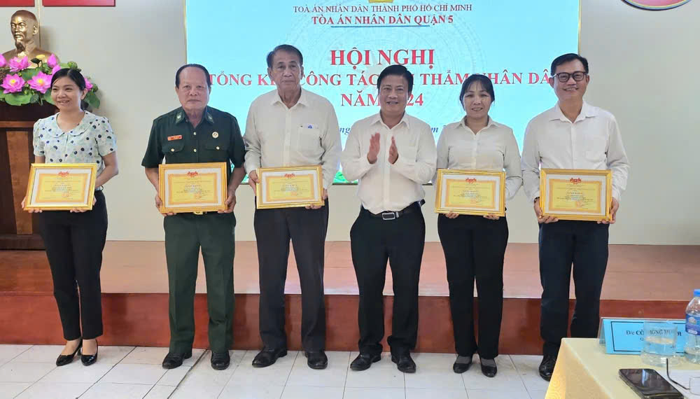 Chiều ngày 17/01/2025, ông Lê Tấn Tài - Ủy viên Ban Thường vụ Quận ủy, Chủ tịch Ủy ban MTTQ Việt Nam Quận 5, Trưởng đoàn Hội thẩm nhân dân, ông Cô Hồng Mười – Quận ủy viên, Chánh án Tòa án nhân dân Quận 5 dự hội nghị tổng kết công tác Hội thẩm nhân dân năm 2024.