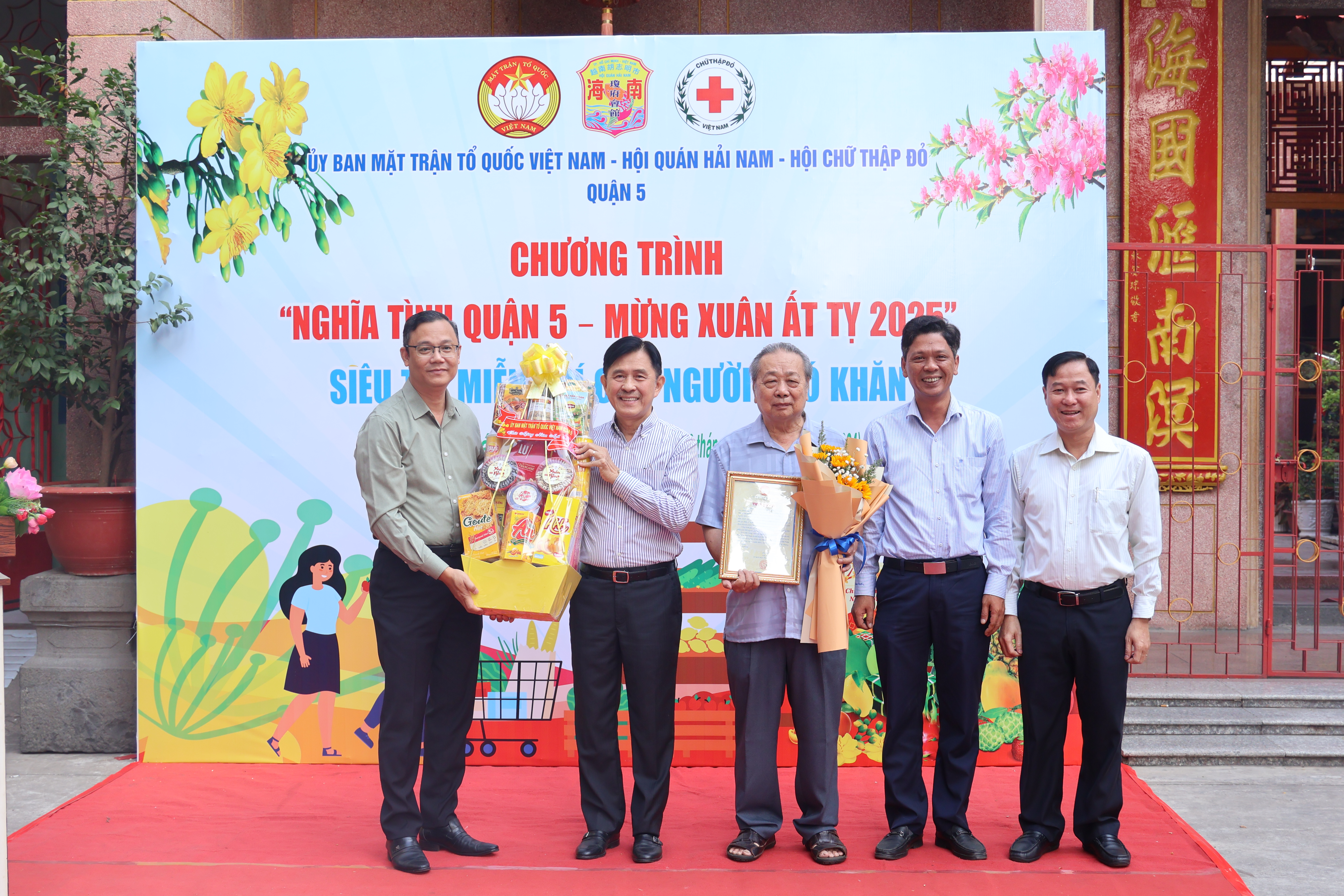 Sáng ngày 11/01/2024, Ban Thường trực Ủy ban MTTQ Việt Nam Quận 5 phối hợp Hội Chữ thập đỏ quận và Hội quán Hải Nam tổ chức chương trình “Siêu thị miễn phí cho người khó khăn” lần 3 nhân dịp Xuân Ất Tỵ năm 2025. Ông Thạch Nghi Xuân - Ủy viên thường trực, Trưởng ban Dân tộc Tôn giáo Ủy ban MTTQ Việt Nam TPHCM; bà Lư Ngọc Thanh – Phó trưởng ban truyền thông Hội Chữ thập đỏ TPHCM; ông Cao Sơn Yên – Phó Bí thư thường trực Quận ủy; ông Lê Tấn Tài – UVBTV Quận ủy, Chủ tịch Ủy ban MTTQ Việt Nam Quận 5; ông Chu Xuân Khoa – UVBTV, Trưởng ban Tuyên giáo Quận ủy Quận 5...
