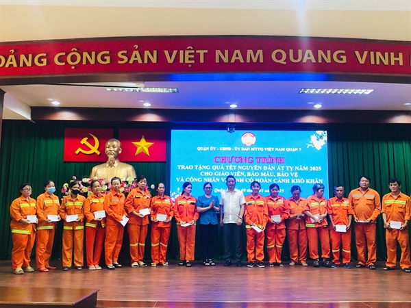 Chiều ngày 09/1, Quận ủy – UBND – UB.MTTQ Việt Nam Quận 7 tổ chức chương trình trao tặng quà Tết Nguyên Đán Ất Tỵ năm 2025 cho 215 giáo viên, nhân viên, bảo mẫu và công nhân vệ sinh môi trường có hoàn cảnh khó khăn trên địa bàn Quận