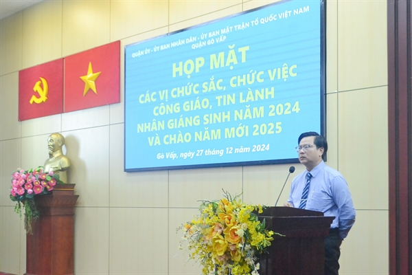 Sáng 27/12, Quận ủy - Ủy ban Nhân dân - Ủy ban Mặt trận Tổ quốc Việt Nam quận Gò Vấp tổ chức họp mặt các vị Chức sắc, Chức việc Công giáo, Tin lành nhân dịp Giáng sinh năm 2024 và chào năm mới 2025.