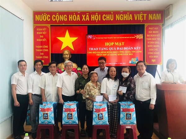 Chiều ngày 23/12, nhân dịp Lễ Giáng sinh năm 2024, Ủy ban Mặt trận Tổ quốc Việt Nam Quận 7 tổ chức trao tặng quà Đại đoàn kết cho 10 hộ đồng bào Công giáo, Tin lành có hoàn cảnh khó khăn.