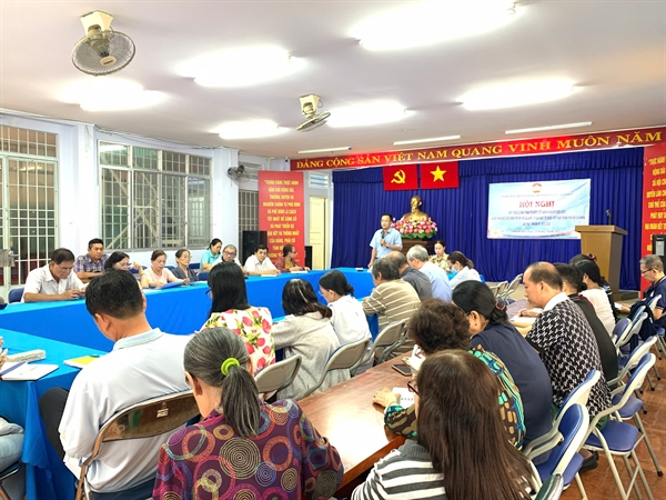 Cán bộ Công đoàn phường Vĩnh Hội và phường Xóm Chiếu học tập Nghị quyết Đại hội Công đoàn TP.HCM