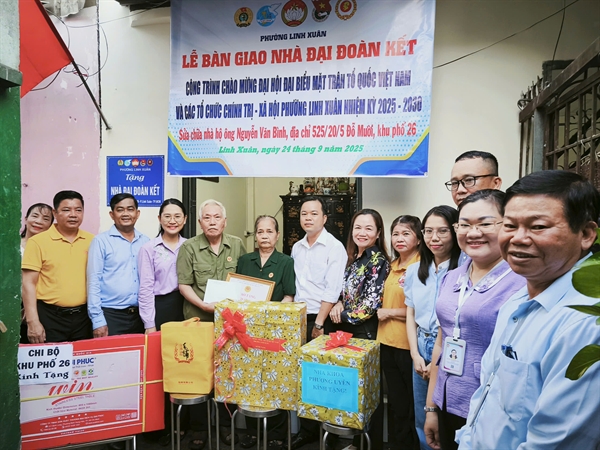 Chiều 24/9, Ủy ban MTTQ Việt Nam phường Linh Xuân đã phối hợp tổ chức Lễ bàn giao công trình sửa chữ nhà Đại đoàn kết cho gia đình hội viên Cựu chiến binh Nguyễn Văn Bình (địa chỉ 525/20/5 khu phố 26). Thiết thực chào mừng Đại hội đại biểu MTTQ Việt Nam và các tổ chức chính trị - xã hội phường lần thứ I, nhiệm kỳ 2025 - 2030.