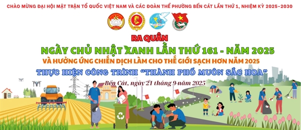 Sáng 21/9, Ủy ban MTTQ Việt Nam phường Bến Cát, phối hợp cùng các hội đoàn thể tổ chức ra quân Ngày chủ nhật xanh lần thứ 161, năm 2025