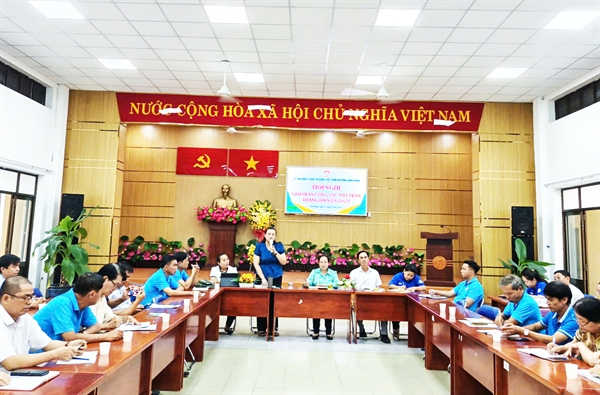 Cán bộ Công đoàn phường Vĩnh Hội và phường Xóm Chiếu học tập Nghị quyết Đại hội Công đoàn TP.HCM